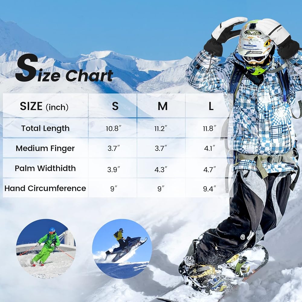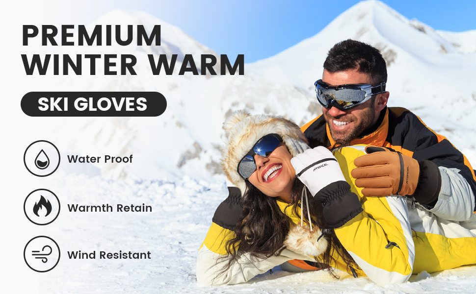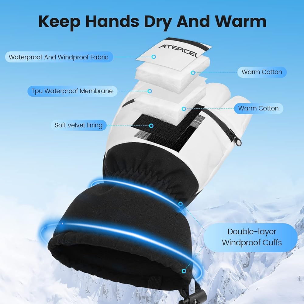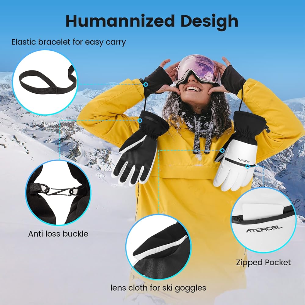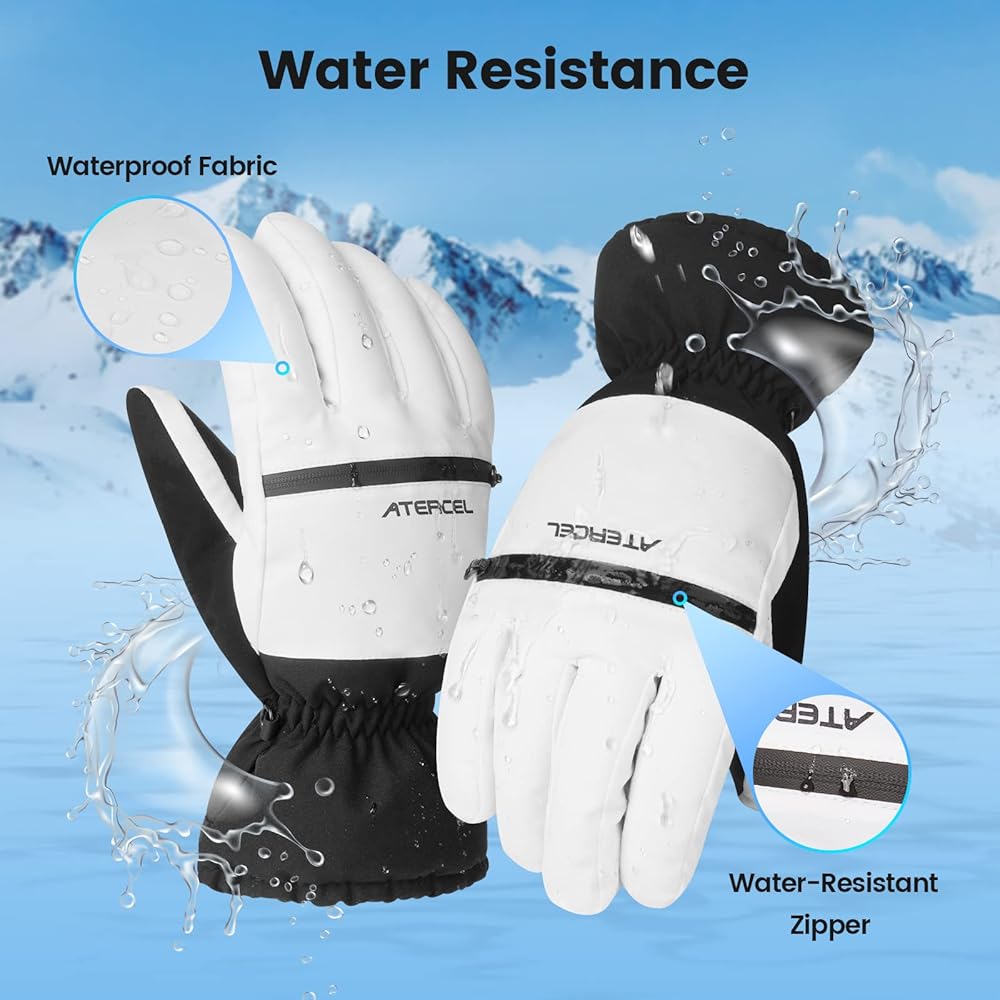 قفازات ATERCEL للتزلج مقاومة للماء تعمل باللمس، وقفازات الثلج للتزلج على الجليد، وعربة الثلج، والمشي لمسافات طويلة في فصل الشتاء للرجال والنساء، ومناسبة في الطقس البارد