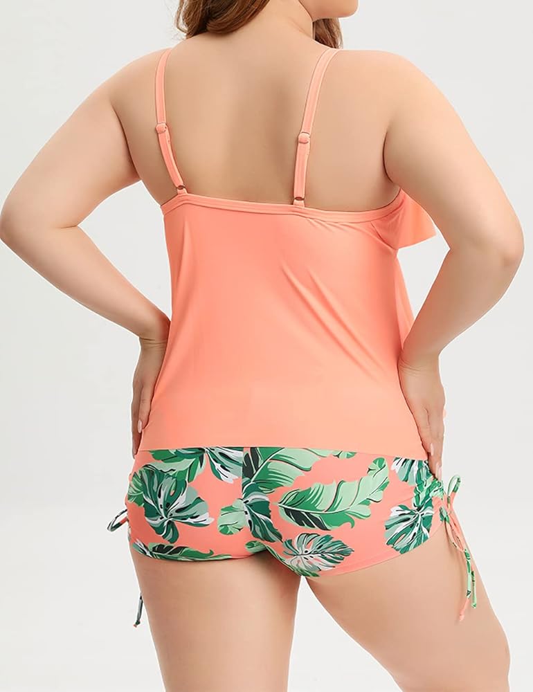 Yuanlar Women's Plus Size Two Pieces Tankini Swimsuit Ruffles Tank Top with Boyshort Bathing Suit