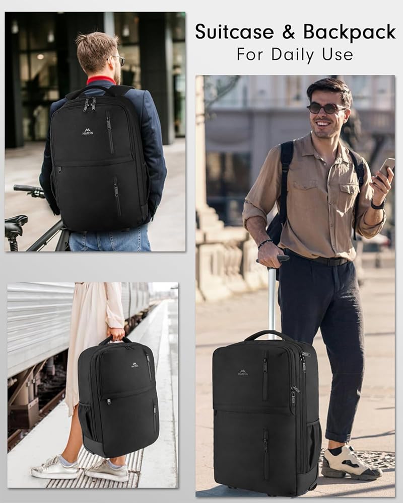 - يمكن استخدام حقيبة الظهر المحمولة هذه ذات العجلات كحقيبة ظهر عند صعود السلالم. يمكنك استخدامها كحقيبة ظهر للسفر بالطائرة أو حقيبة عطلة نهاية الأسبوع الليلية أو حقيبة ظهر للاب توب.