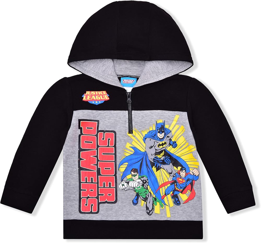 • بلوفر بغطاء للرأس بنصف سحاب للأولاد من DC Comics Batman وSuperman وGreen Lantern للأطفال الصغار والأطفال الصغار. سترات وبلوزات عصرية للأولاد من The Perfect Justice League