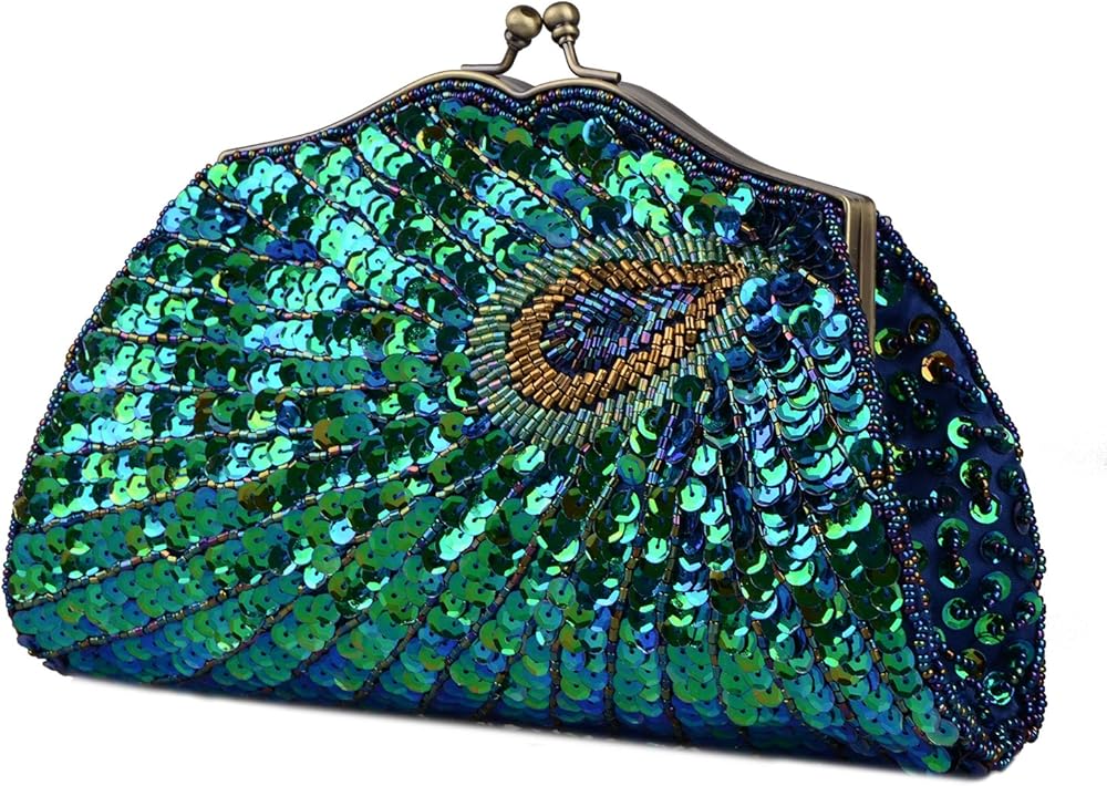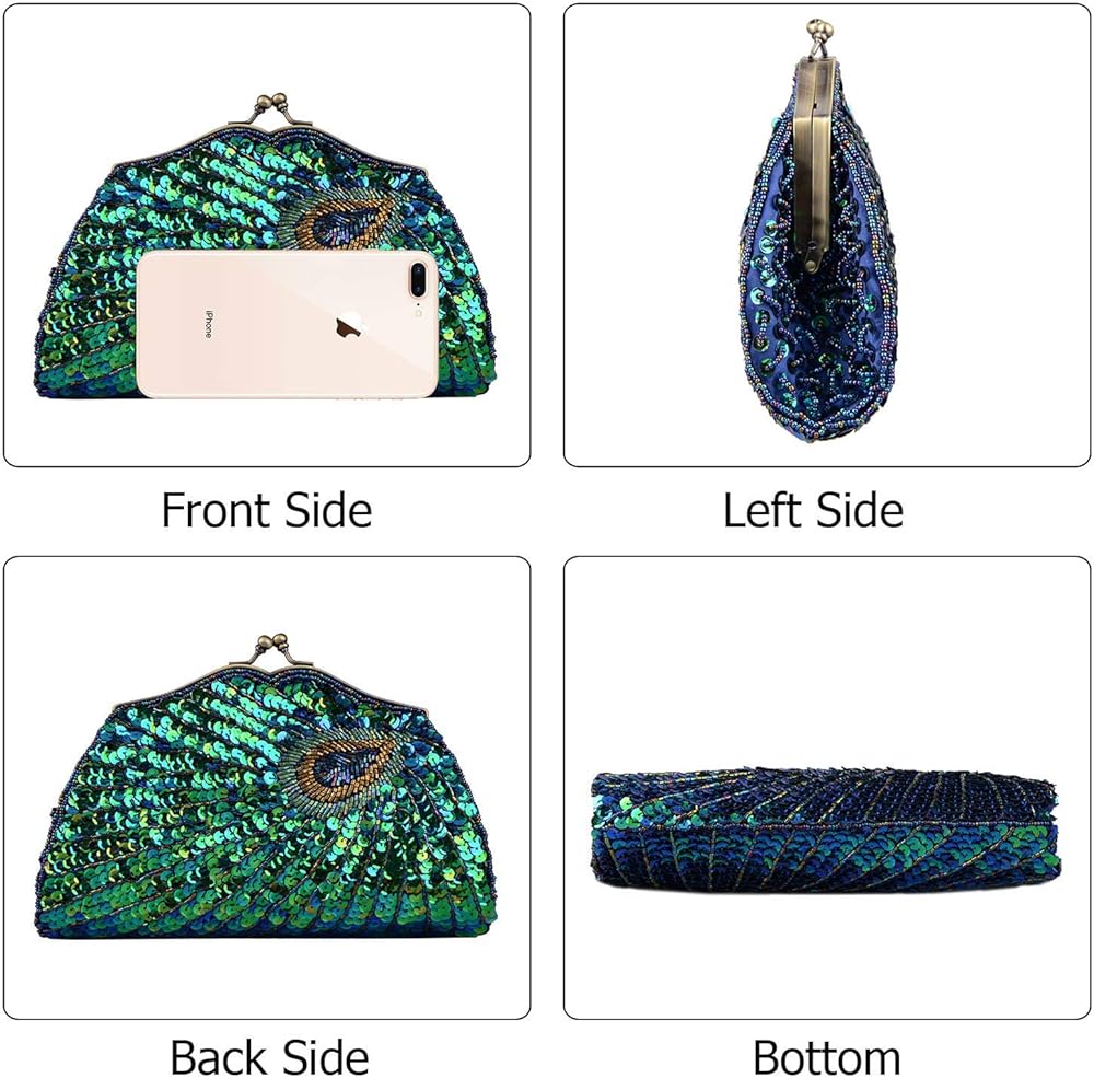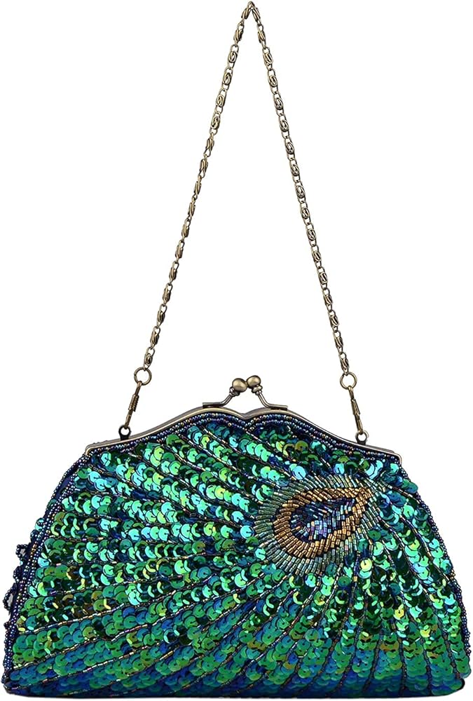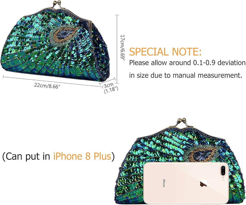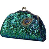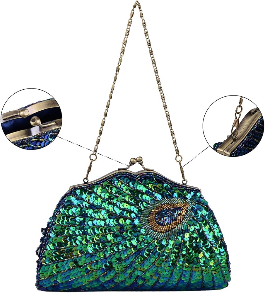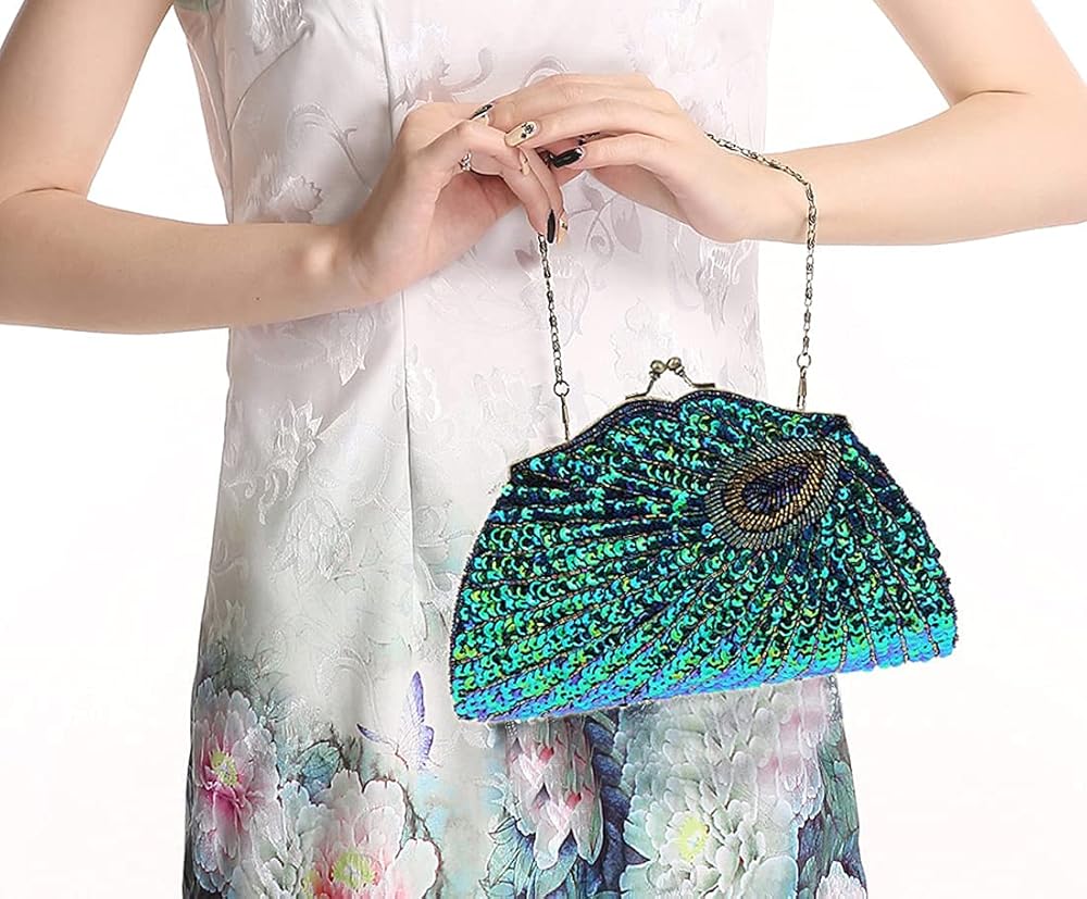 💋 حقيبة يد كلاسيكية مطرزة بالترتر عالية الجودة، جميلة جدًا ولامعة، تمامًا مثل ريش الطاووس، تجذب انتباه الجميع.
