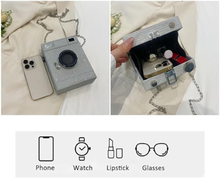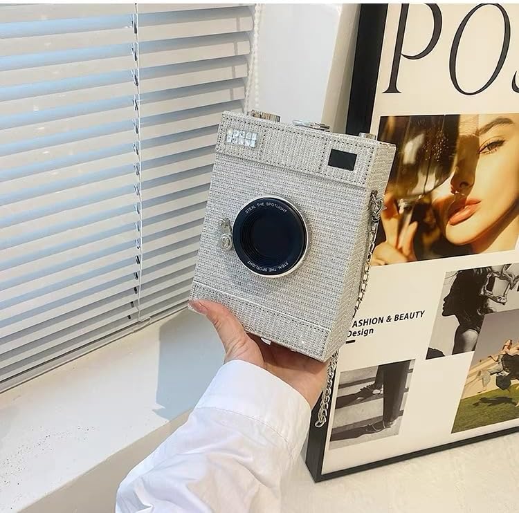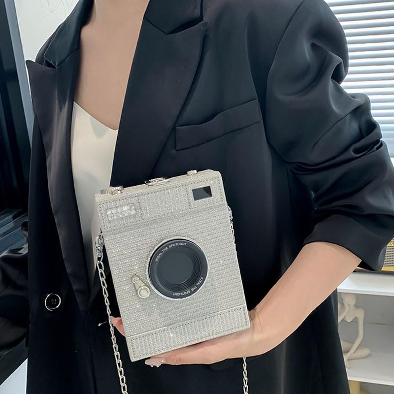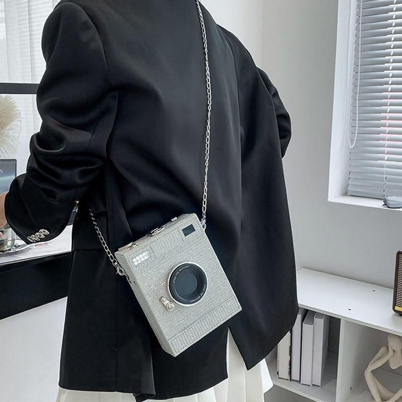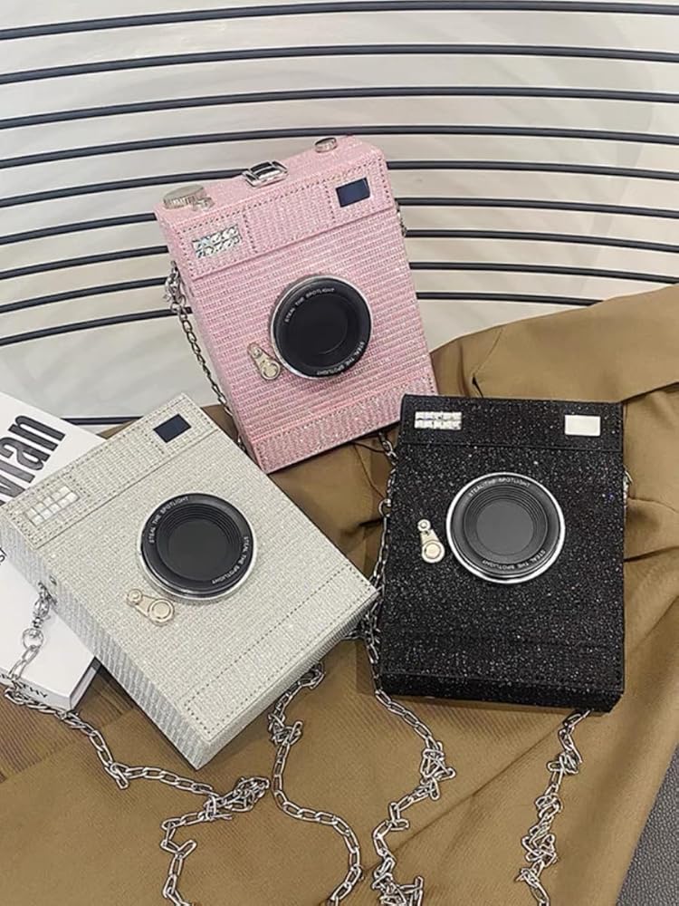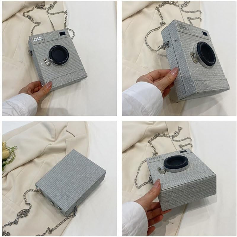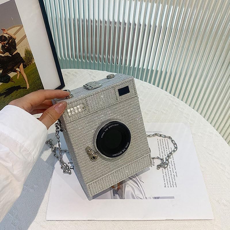 حقيبة كروس على شكل كاميرا من زينوسي، حقيبة يد للسهرات لامعة لامعة للنساء