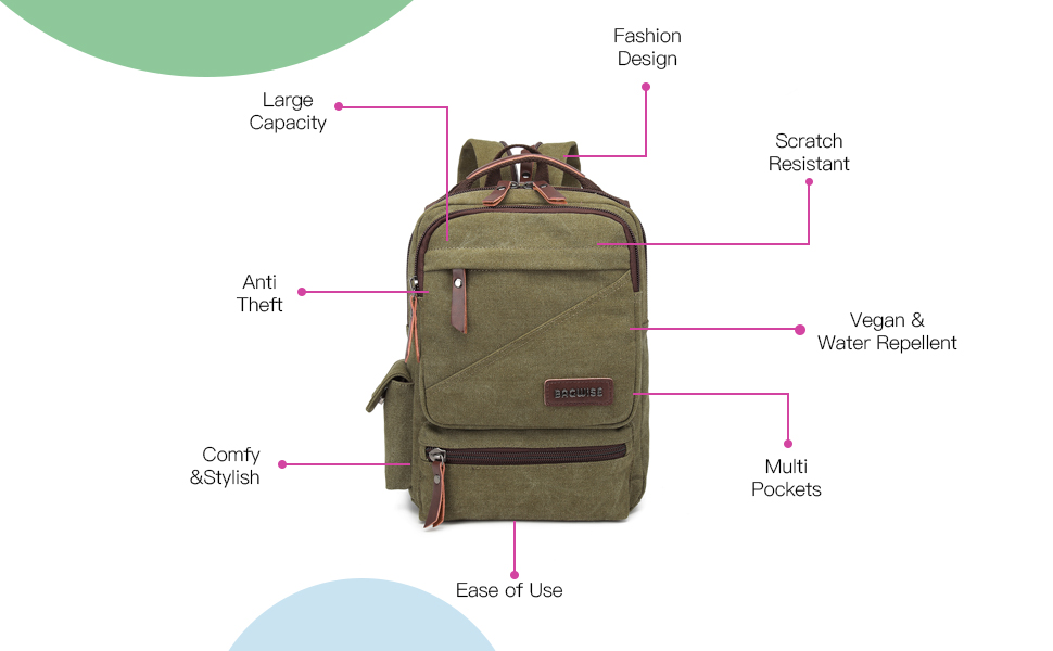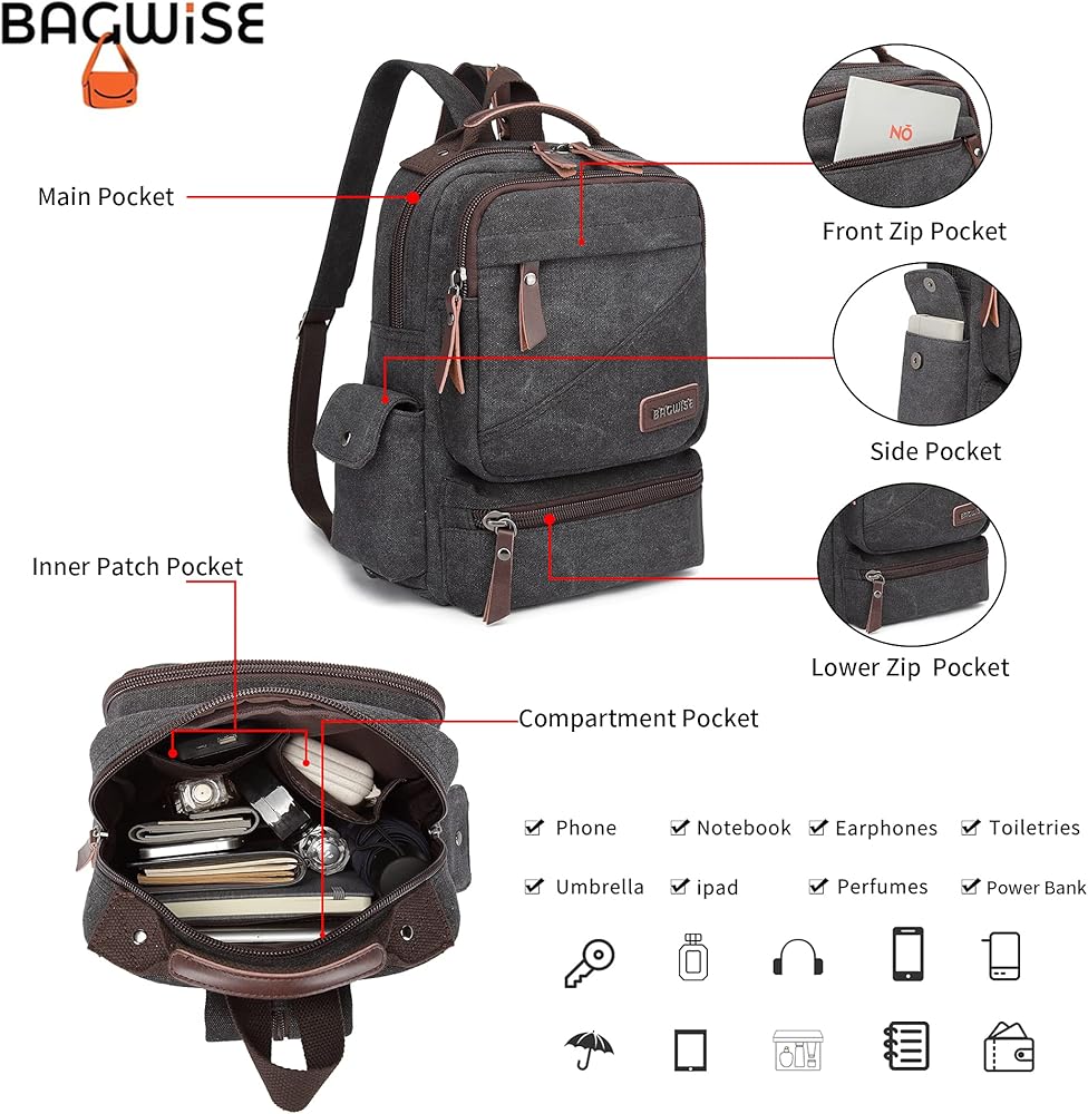 الاستخدام اليومي يمكن استخدام حقيبة الظهر القماشية BAGWISE في العديد من المناسبات المختلفة. للتسوق والسفر والمشي لمسافات طويلة ولأنشطتك اليومية. مع جهاز فصل الكمبيوتر، من السهل جدًا حمل جهاز الكمبيوتر الخاص بك وحمايته. إنه مثالي لكل من النساء والرجال. حقيبة الظهر القماشية الأنيقة جدًا والمقاومة للماء سهلة الفتح والإغلاق.