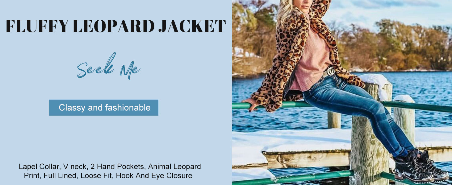 • التفاصيل: ياقة مطوية ورقبة على شكل حرف V، وجيبان لليد، طباعة جلد الفهد، بطانة كاملة، مقاس فضفاض، إغلاق بخطاف وعروة