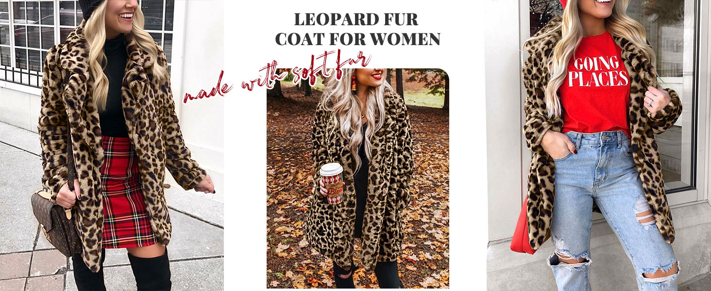 • معطف فرو بتصميم جلد الفهد للنساء، أنيق وعصري