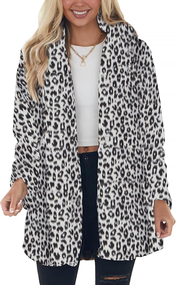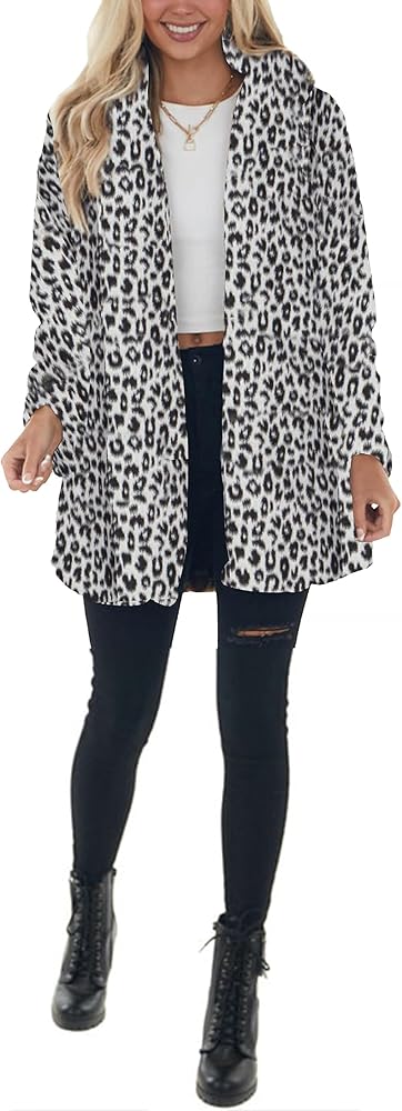 • قماش مريح: جاكيت كارديجان نسائي كبير الحجم من الفرو بتصميم جلد الفهد، مصنوع من مواد ناعمة وخفيفة ومريحة في الارتداء