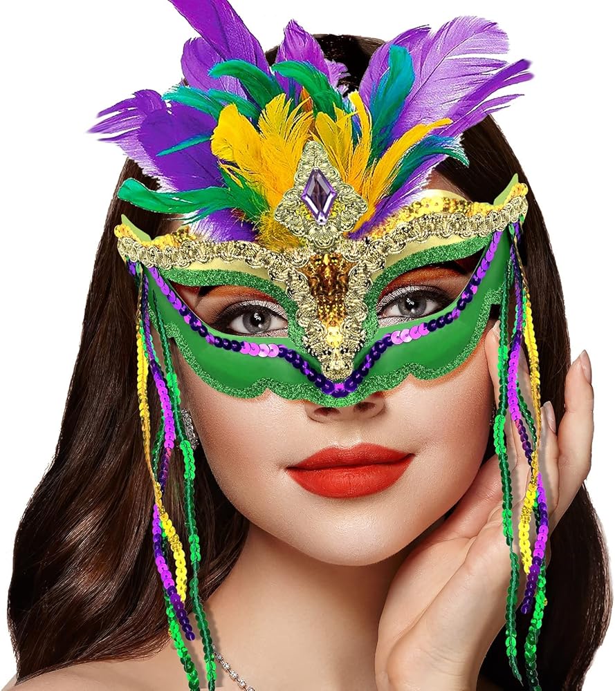 • Gorgeous Masquerade Masks: venetian mask with feather is the must-haves for the carnival party, these stylish feather masquerade half masks will make Fat Tuesday even more fancy. Distribute them as wearable party gifts and photo props at the New Orleans Music Festival, and host a fun Mardi Gras celebration with this colorful feather mask series.