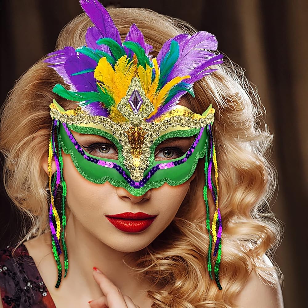 • Multiple Uses: Carnival masks are a great complement to the carnival tree or wreath. Feather masquerade mask look more beautiful between purple and green decorations. These green masquerade mask is suitable for carnivals, masquerades, Halloween, cosplay, party dances, Nightclubs, wedding banquets, stage performances, etc.