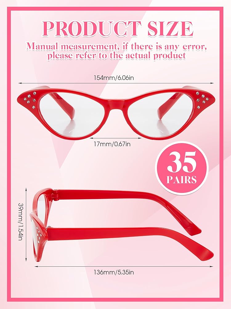 • Classic Style for Most Occasions: our red glasses boast a classic style that can be worn for most occasions, from casual outings to formal events, whether you're dressing up, cosplay, school play, or 50's party, they will elevate your look and add a touch of glamour to your outfit