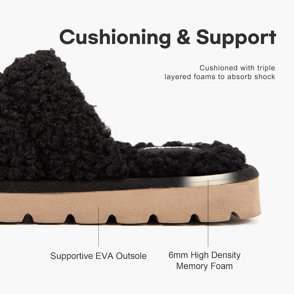 نعل داخلي من FAUX FUR POLAR FLEECE لا يؤكد الدفء فحسب، بل يمتص الرطوبة بعيدًا للحفاظ على قدميك من التكدس. استمتع بالأحذية المنزلية المريحة والغامضة المصنوعة من الفرو الصناعي سواء كنت حافي القدمين أو ترتدي الجوارب
