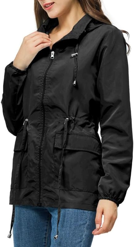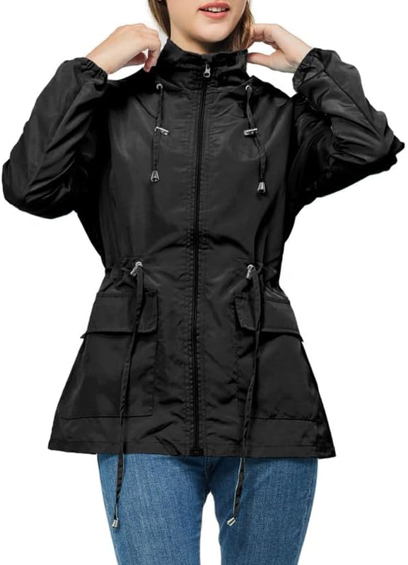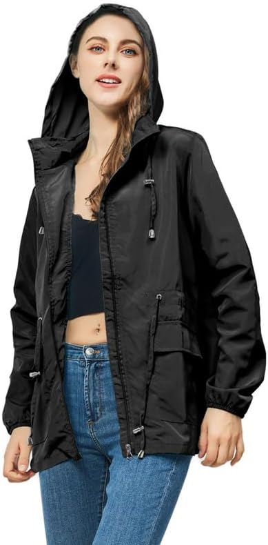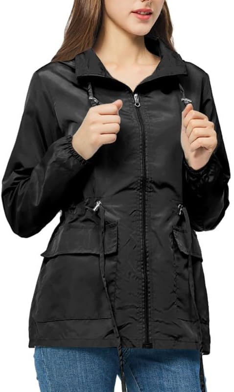 【ضمان الجفاف】معاطف المطر النسائية ذات القلنسوة مصنوعة من مادة خفيفة للغاية، مسامية ومقاومة للماء والرياح، مما يبقيك جافًا ومناسبًا لمختلف المواسم والطقس.