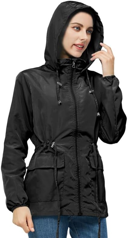 【تصميم أنيق】تتميز سترة المطر النسائية خفيفة الوزن بسحاب أمامي أنيق مقاوم للرياح والمطر، بالإضافة إلى جيبين كبيرين للتخزين في الأمام. مظهره العصري يجعله الرفيق المثالي لمختلف الأنشطة الخارجية.