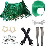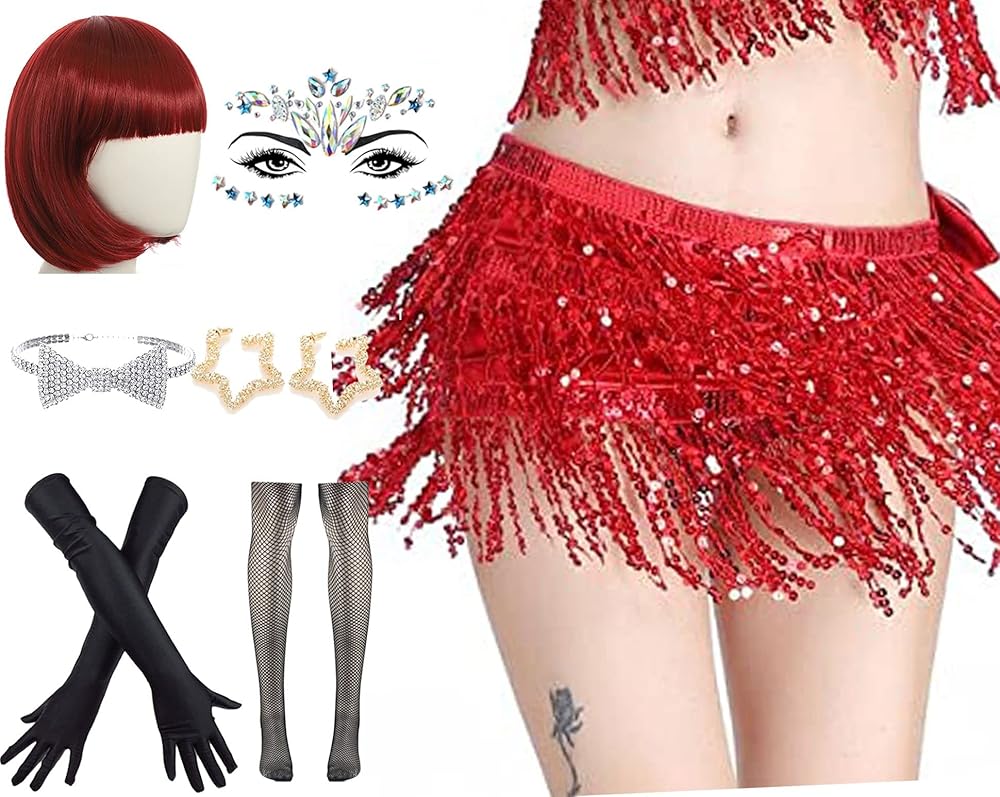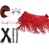 • Paillette Tassel Latin Dance Dress Samba Costumes Women Dresses Ballroom W/ Wig Earring Accessories set