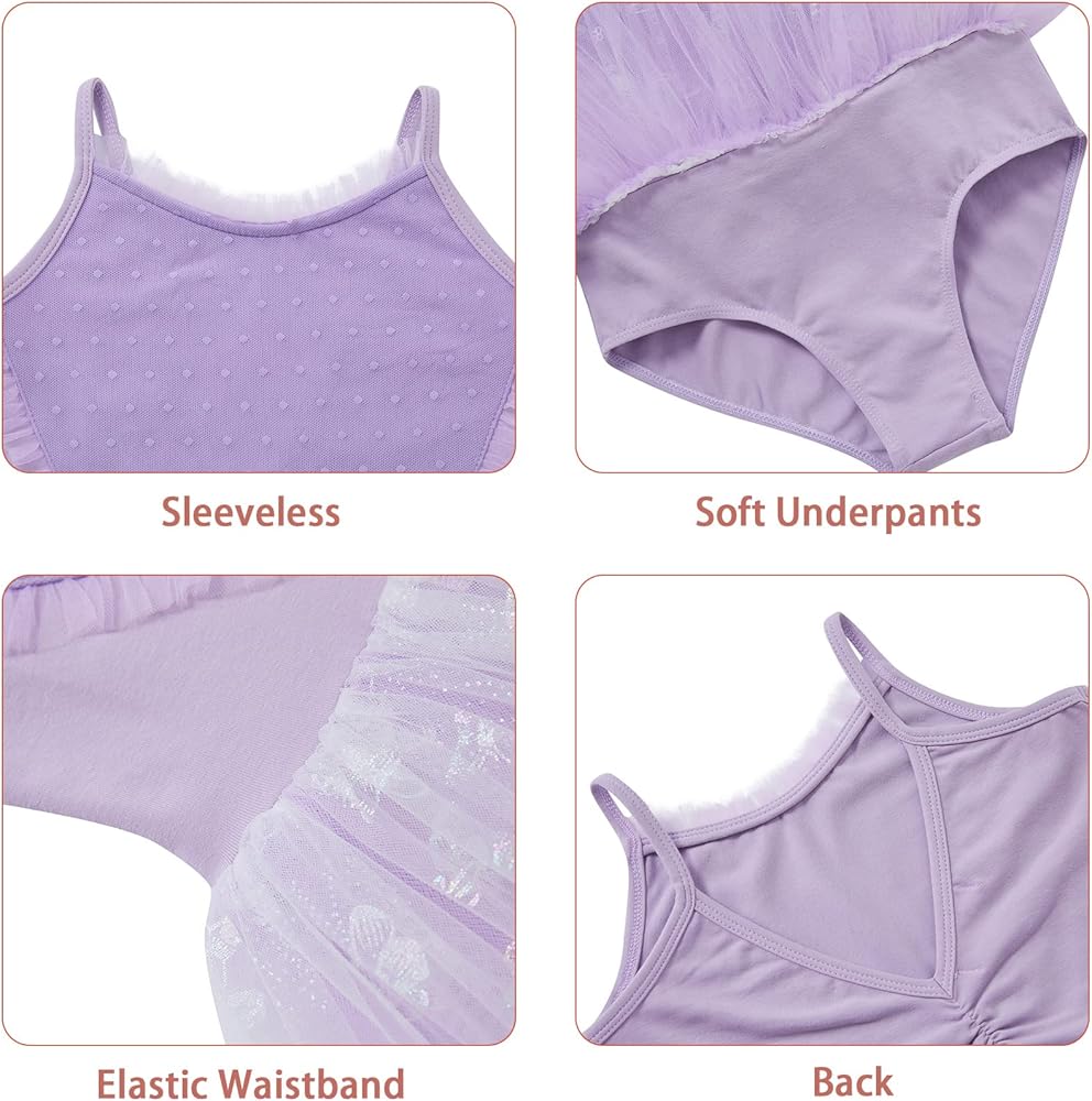 【❥ تصميم خلفي أنيق】مصمم بفتحة مفاتيح عصرية في الخلف، يتميز ثوب الباليه توتو للفتيات الخاص بنا برقبة على شكل حرف V بدون أكمام وظهر مجوف. من السهل ارتداؤه وخلعه، بفضل نسيجه الناعم والمطاط الممتاز. تم تعزيز ثوب الرقص بتنورة مكشكشة لإضفاء لمسة أنثوية ورائعة.
