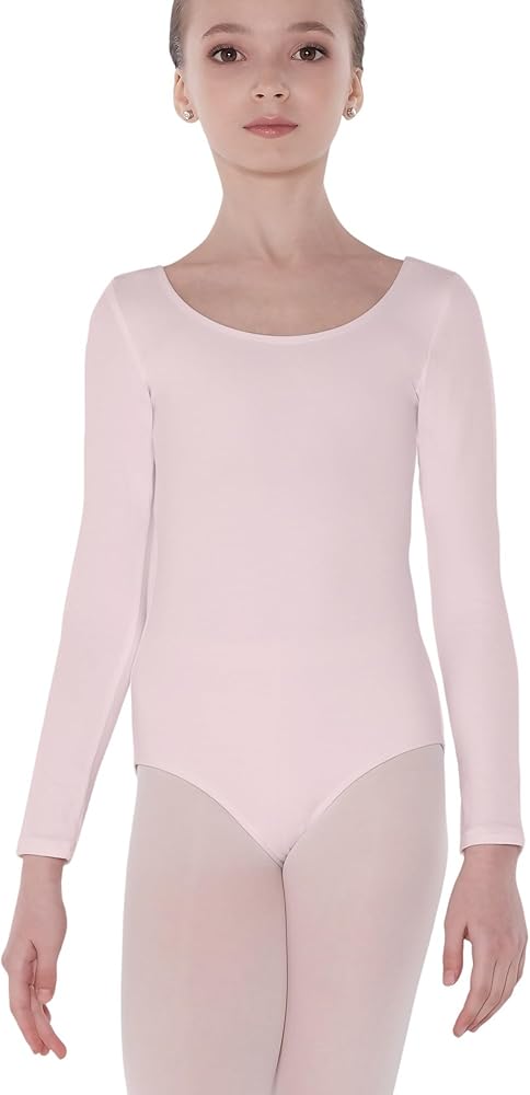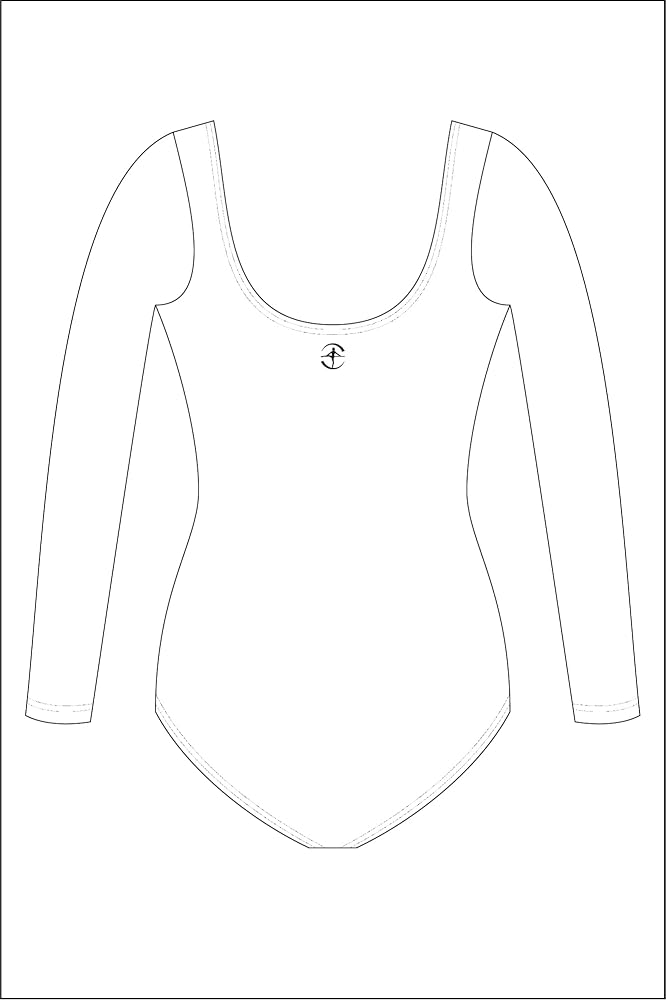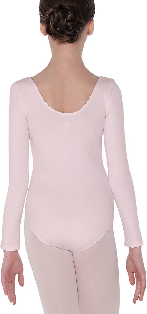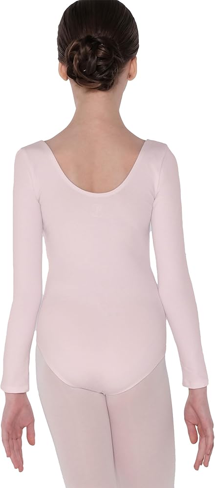 - ثوب رقص كلاسيكي بأكمام طويلة، شكل رقبة واسعة، ظهر متواضع، خط ساق مقطوع بالباليه