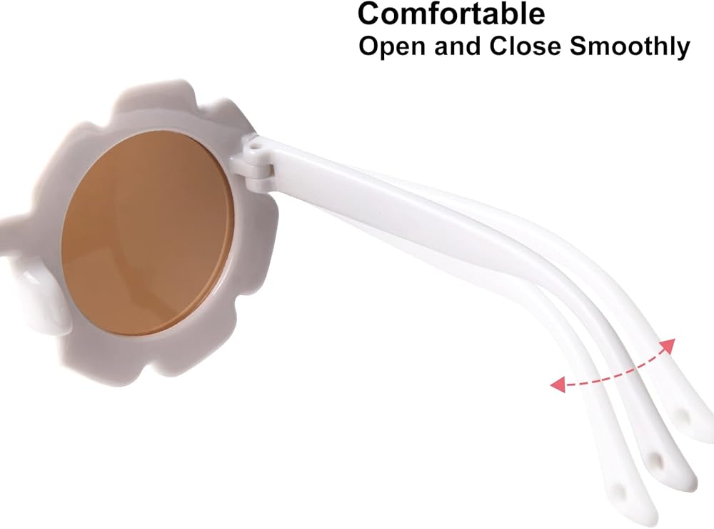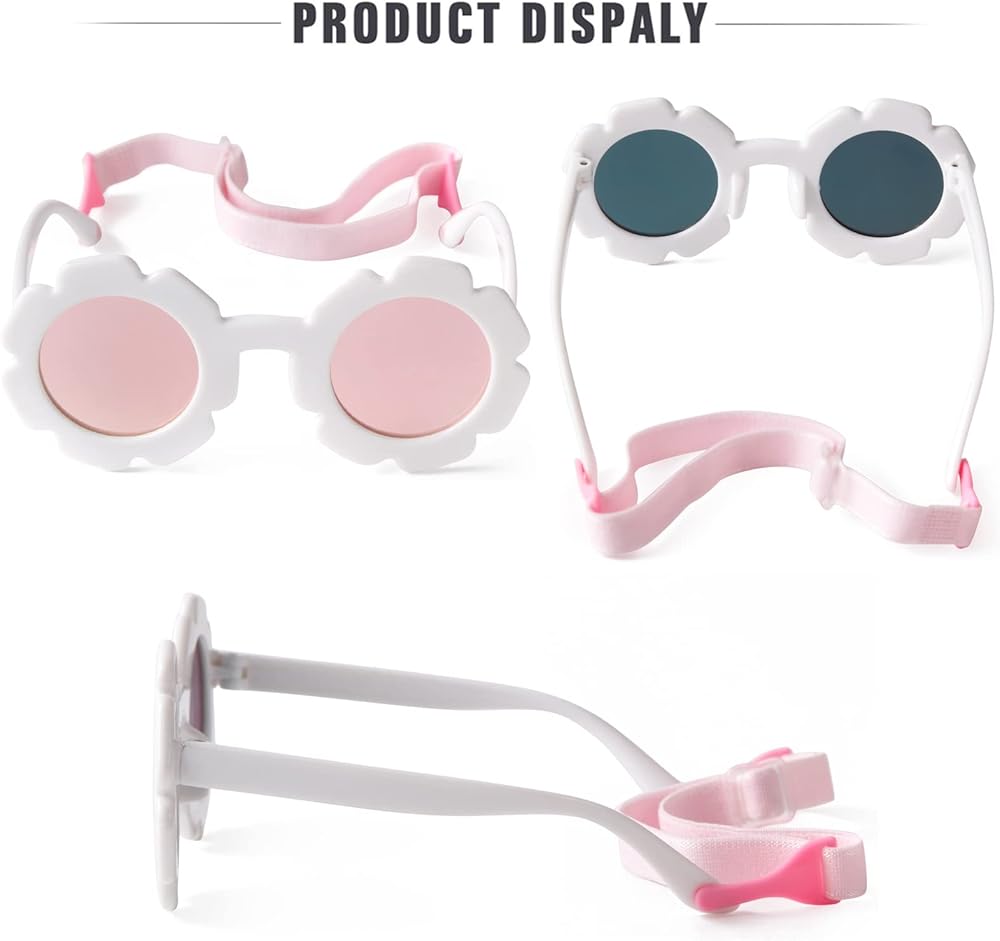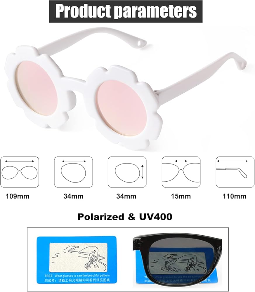 💖مرنة وقابلة للانحناء: نظارات شمسية على شكل زهرة للأطفال، يمكن ثني النظارات الشمسية المستقطبة المرنة القابلة للانحناء مع حزام في جميع الاتجاهات دون أن تنكسر؛ فتح وإغلاق المفصلات المعدنية بسلاسة؛ الوزن 20 جرام فقط، مريح للارتداء لفترة طويلة، ويضمن الحزام بقاءه في مكانه.