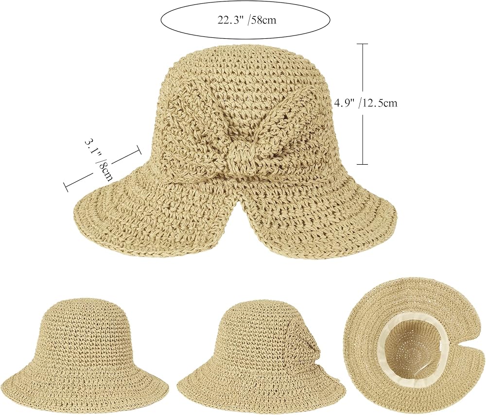 قبعة شاطئ أنيقة: قبعة الشاطئ المصنوعة من القش ذات عقدة على شكل فيونكة تتماشى بشكل جيد مع أساسياتك الصيفية أو ملابس الشاطئ، وتزيد من طرازاتك على الفور. مثالي للارتداء اليومي أو الشاطئ أو الحديقة أو السفر أو صيد الأسماك أو التنزه سيرًا على الأقدام أو البستنة أو حمام الشمس في حمام السباحة أو الأنشطة الخارجية الأخرى