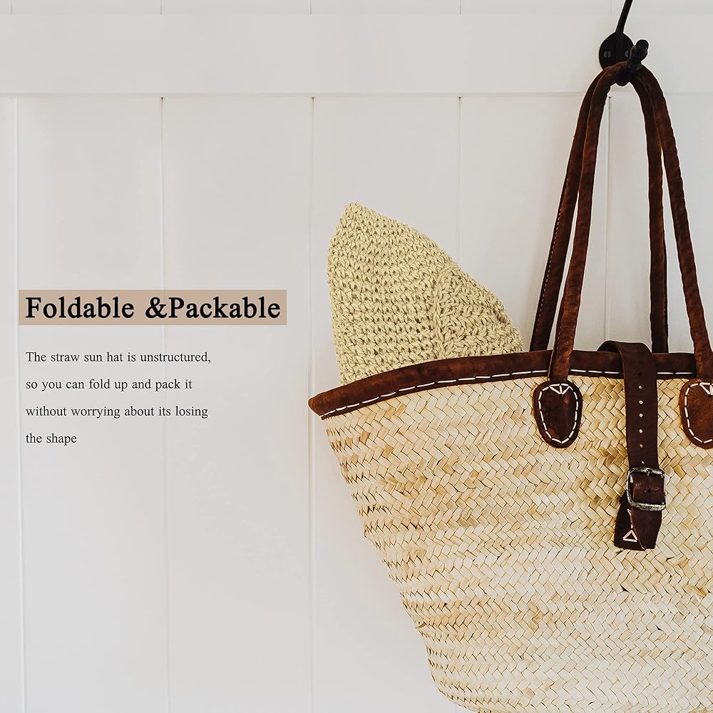 قبعة صيفية قابلة للتعبئة: قبعة القش الصيفية قابلة للطي ويمكن طيها في حقيبتك دون أن تفقد شكلها، لذلك يمكنك أخذها إلى كل مكان بسهولة أثناء السفر.