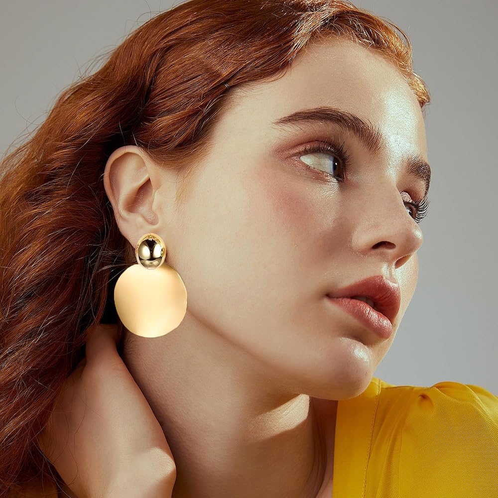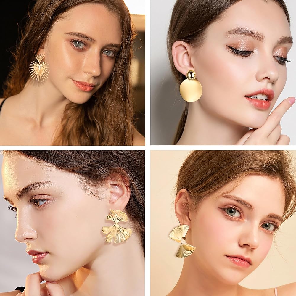 💕أقراط ذهبية مميزة: قطعة مميزة جريئة وفريدة من نوعها، أقراط لصنع البيان مع مشبك خلفي، وتكون رائعة للارتداء اليومي أو الارتداء اليومي.