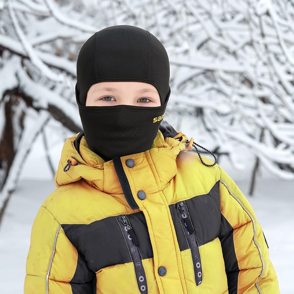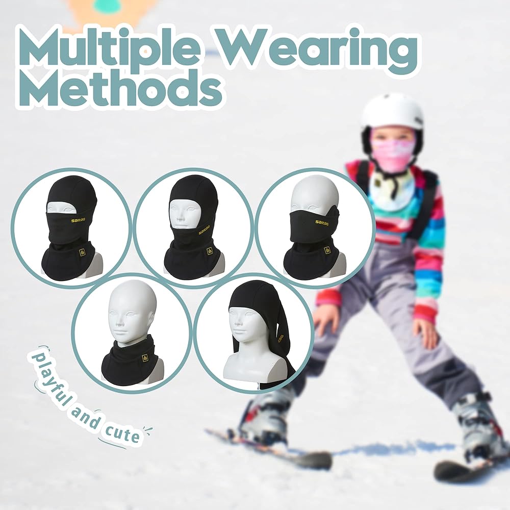 تصميم فريد من نوعه مع قناع قابل للإزالة: بالاكلافا للأطفال الخاصة بنا سهلة الارتداء للغاية. يمكن أن يتحرك قناع التزلج لأعلى ولأسفل لتغيير درجة الحرارة، ويمكن خفض جزء قناع الوجه أسفل الذقن لزيادة التهوية ومريح للتحدث أو تناول الطعام، بالإضافة إلى أنه يمكن سحبه إلى أعلى الرأس لمزيد من الراحة أو الدفء.