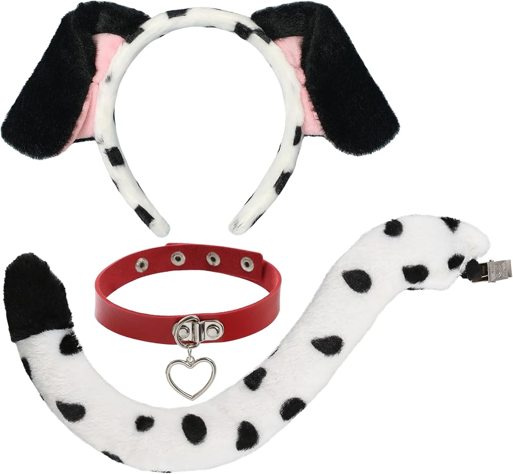 - 3 قطع تتضمن: 1* عصابة رأس على شكل أذنين دلماسية، 1* قلادة على شكل قلادة، 1* ذيل دلماسي.