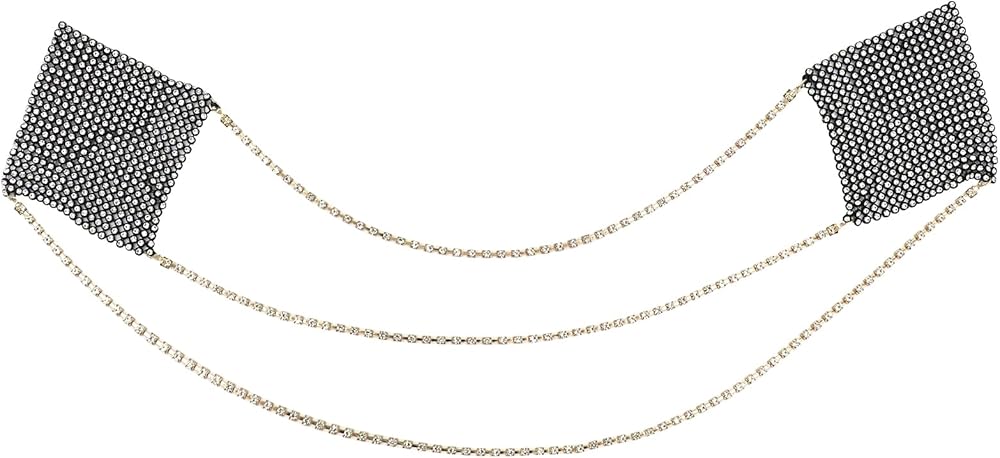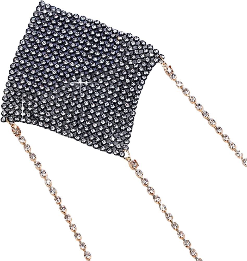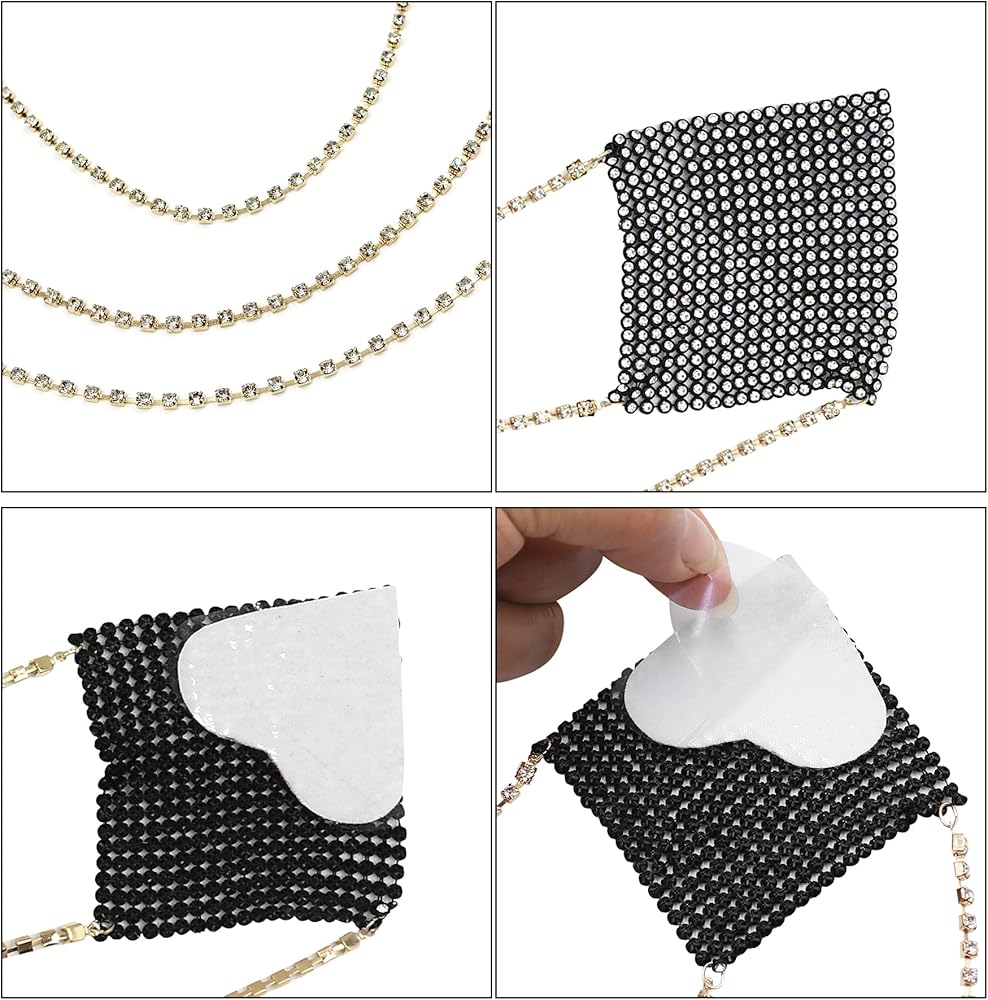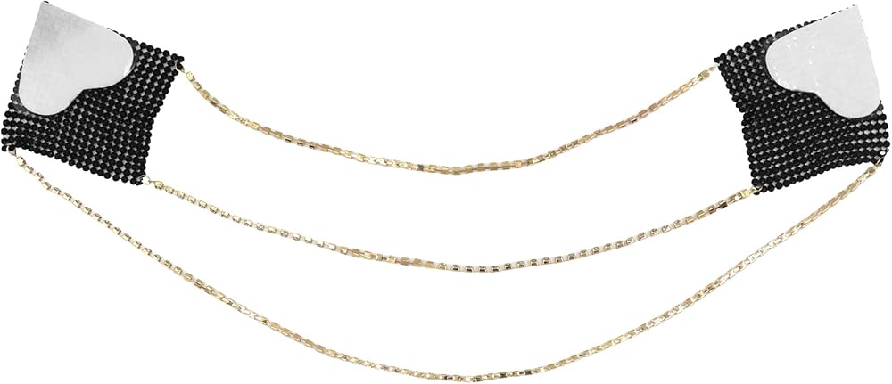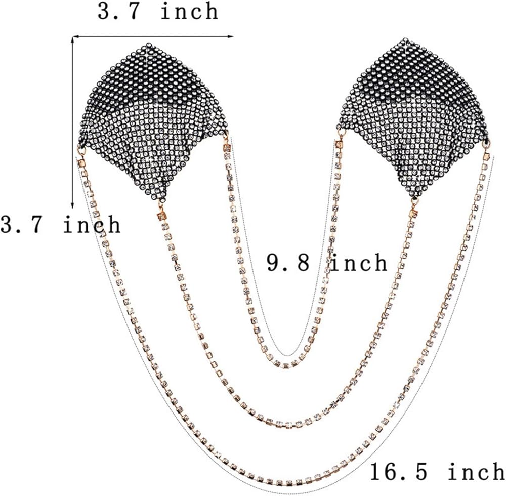 JUMISEE Women Sparkly Rhinestone Crystal Nipple Cover with Gold Metal Chain, Reusable Adhesive Breast Petals Pasties Sexy Body Chain