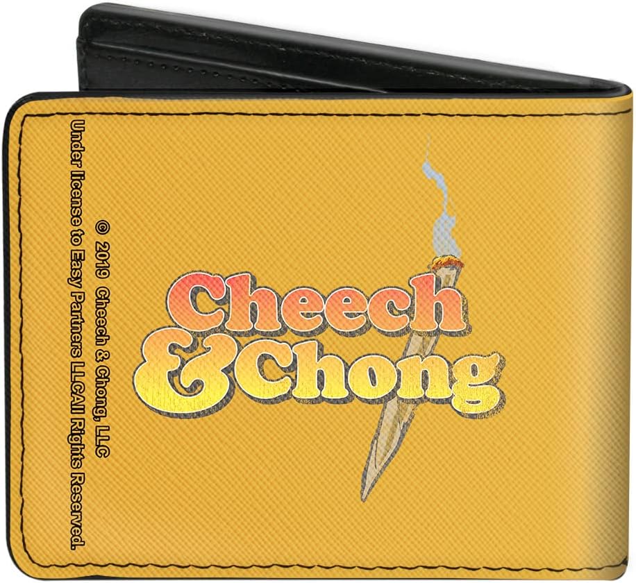 This awesome men's bi-fold wallet is made from premium vegan leather. It measures 4.0x3.5x0.5 Inches, and features the standard billfold, 5 card slots, and windowed ID holder. The logos are applied using advanced printing technologies, so the wallet will still look good after years of hard use. This product is made by Buckle-Down, Inc. and Officially Licensed by Cheech & Chong.