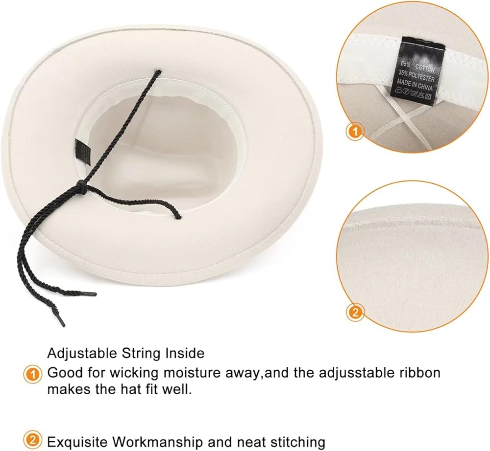 • [Cowboy Hats Size] Hat Circumference: 56-58cm/22-22.8inch, Brim Width: 9cm/3.54", Height: 11cm/4.33". Great for Adults & Bigger Kids. Note: Please pay attention to the size of the hat before ordering.