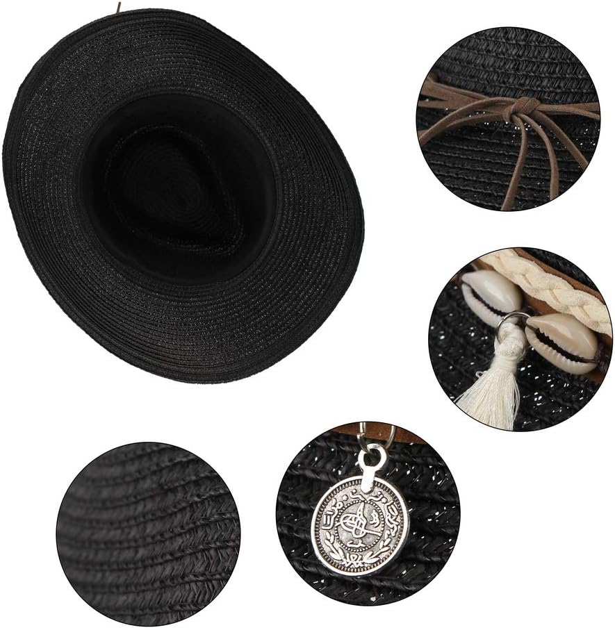 تصميم فريد ومبتكر: هذه القبعة النسائية الصيفية المصنوعة من القش من بنما باستخدام شكل قبعة رعاة البقر الكلاسيكية مع شريط قبعة مبتكر، تبدو أكثر أناقة وسحرًا. حزام القبعة مصنوع بعناية من الجلد والدانتيل والخرز والكرة القطيفة والعناصر الأخرى، والجزء الخلفي من القبعة بتصميم حبل مربوط على شكل فيونكة، يزيد من إحساس القبعة بالموضة. قبعات رعاة البقر المثالية.