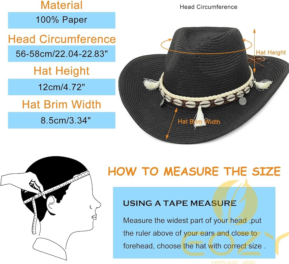 مقاس قابل للتعديل: مقاس واحد يناسب معظم البالغين والنساء والرجال والسيدات. محيط الرأس: 22.8 بوصة (58 سم). العمق: 3.5 بوصة (9 سم). الحافة: 3.5 بوصة (9 سم). قبعة رعاة البقر الغربية الكلاسيكية هذه للرجال والنساء مع تصميم حبل قابل للتعديل بالداخل، يمكنك دائمًا تعديل حجم محيط القبعة لجعلها تناسب الرأس بشكل أفضل. ارتداء ليس من السهل أن تسقط.