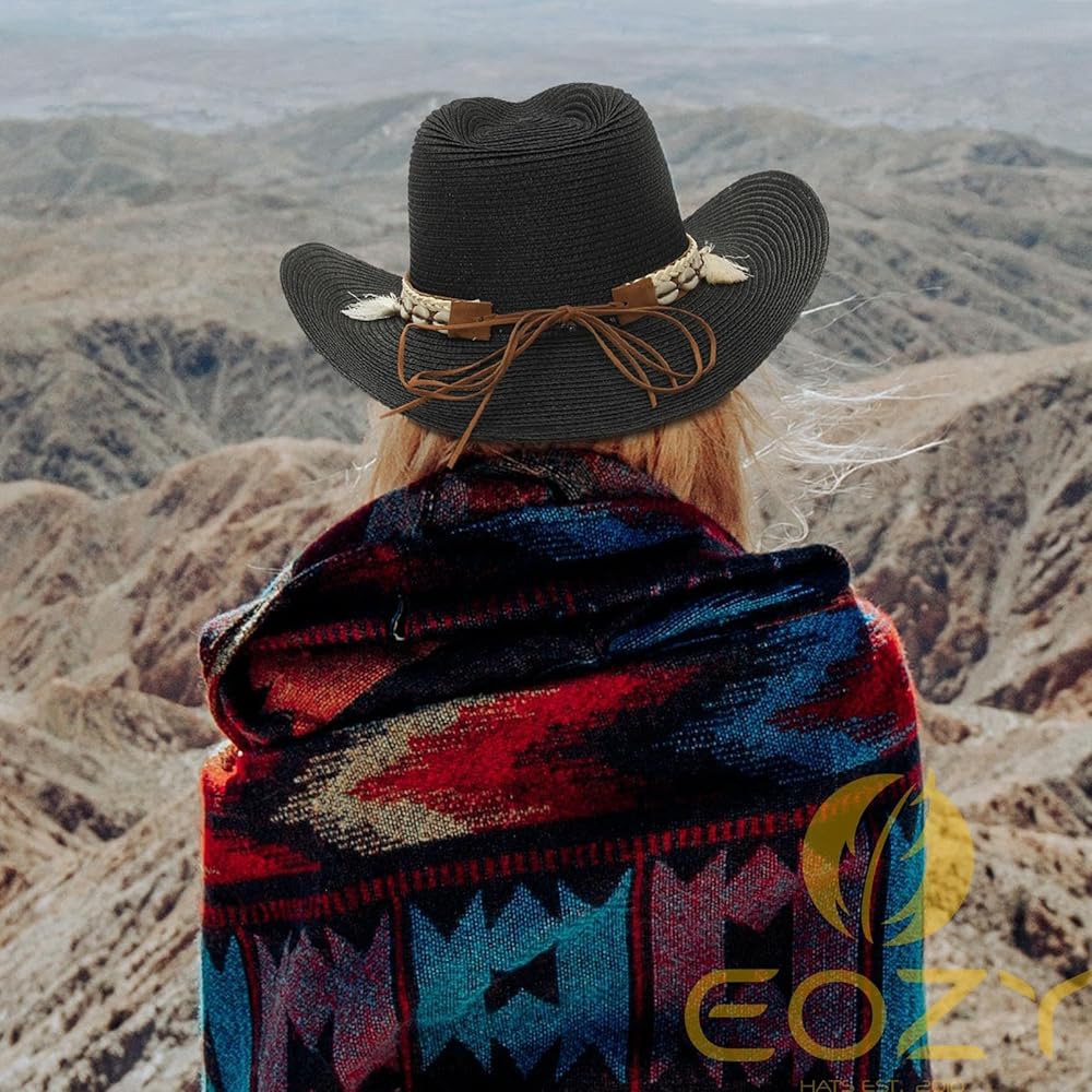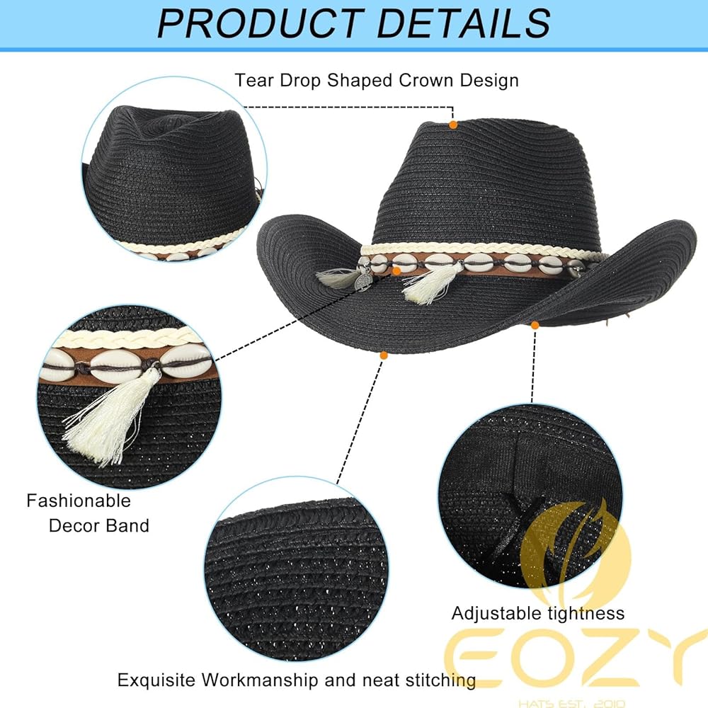 خامة ممتازة: قبعة رعاة البقر ذات القش للرجال والنساء مصنوعة من قش ورقي عالي الجودة بنسبة 100%، نسيج من القش الورقي، مريحة في الارتداء، مسامية ومتينة.