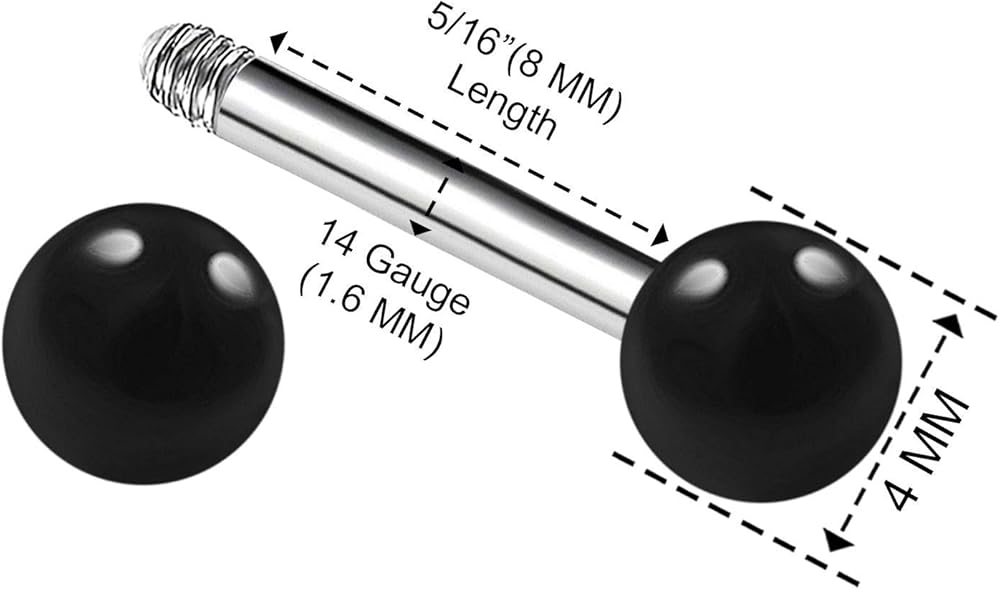 • YOU WILL GET Two pieces of 14g (1.6mm) 5/16" (8mm) 316L Surgical Steel helix jewelry, threading in solid colors Black 4mm acrylic ball end.
