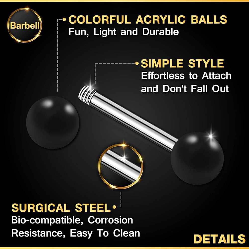 • COLORFUL ACRYLIS BALLS with a straight barbells are fun, light and durable. PRODUCT CHARACTERISTICS : earring barbell piercing, 14g eyebrow barbell, 14g straight barbell 8mm, short barbell ring, barbell bar blue, barbell earring balls, barbell surgical steel 14g.