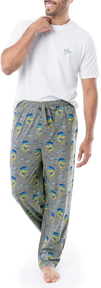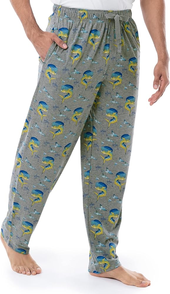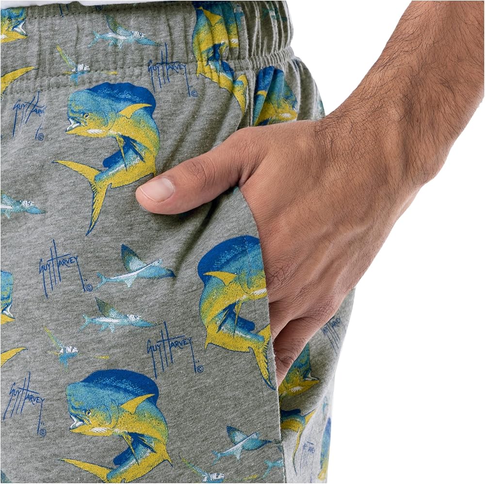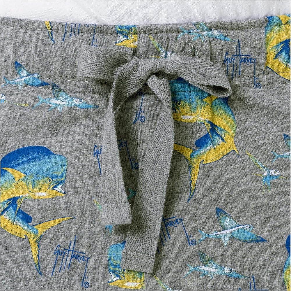 Guy Harvey printed jersey knit lounge pants set are your all-season, all-the-time chill-out sleep set - whether you're just relaxing around the house or trying to get a good night's sleep. The super soft, lightweight cotton knit fabric keeps you warm when you need it, but is cool enough for the spring and summer months, and has natural stretch so it moves with you, too. The elastic waistband has a comfortable drawstring cord, so you can tailor the fit to exactly where you need it. Two side seam pockets and a button thru fly complete the classic look. Machine washable; 100 percent cotton. Help Save our Oceans! Your purchase supports the health of our oceans and marine life. A portion of the proceeds from the sale of all official Guy Harvey merchandise benefits the Guy Harvey Ocean Foundation, which conducts scientific research and hosts educational programs to help save our seas.