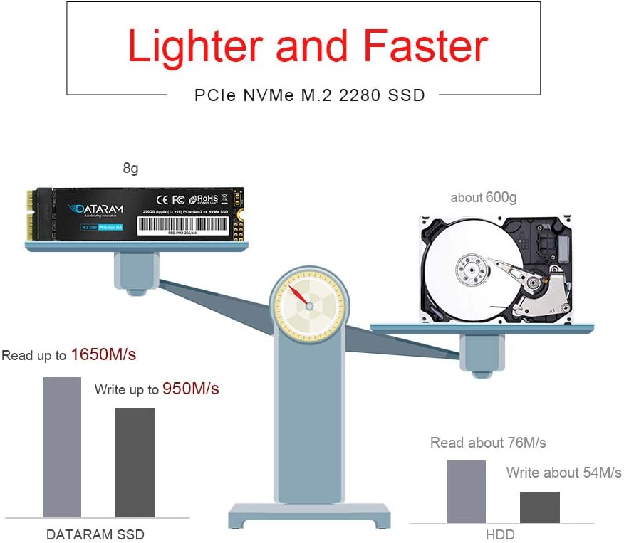 أسرع 20 مرة من محركات الأقراص الصلبة التقليدية. مع سرعات القراءة والكتابة المذهلة، لن يزيد محرك الأقراص الصلبة داتارام من الأداء فقط. تشغيل عالي السرعة / إيقاف تشغيل / تحميل واستجابة تطبيق