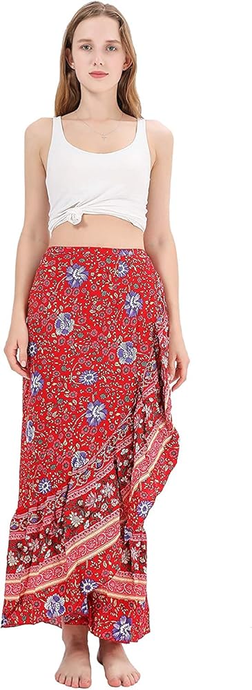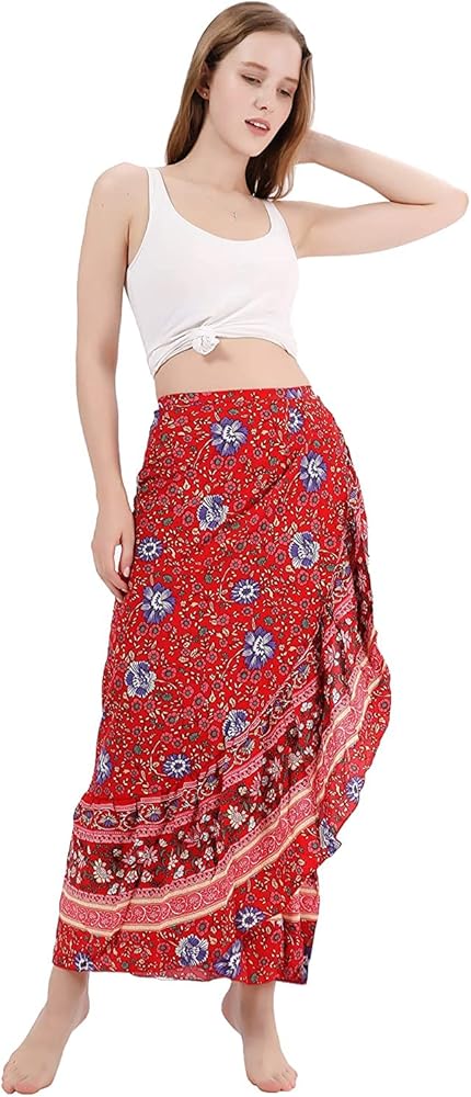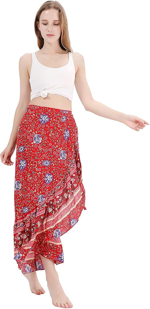 تألقي بأناقة مع تنانيرنا الطويلة الكاجوال المطبوعة الجميلة، والتي تتميز بتصميم ملفوف وذوق بوهو.