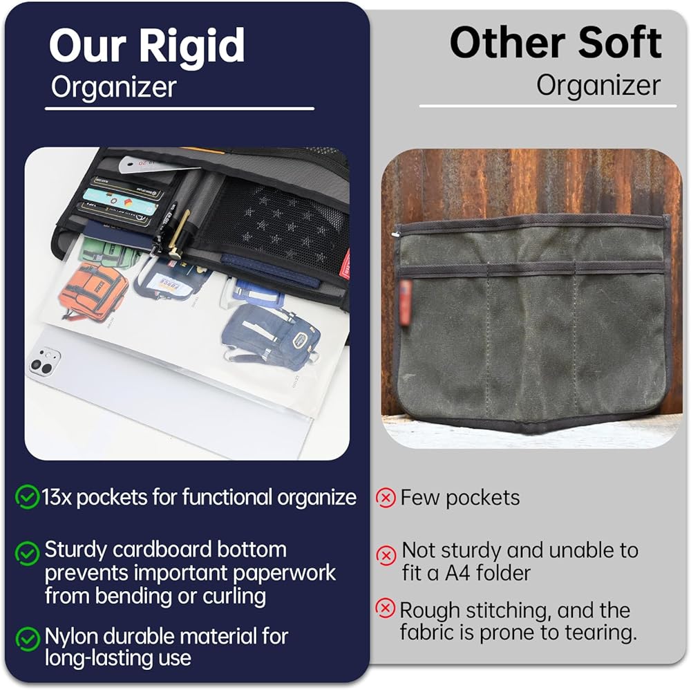 • - You will never need to dig for your items again with the organizer.