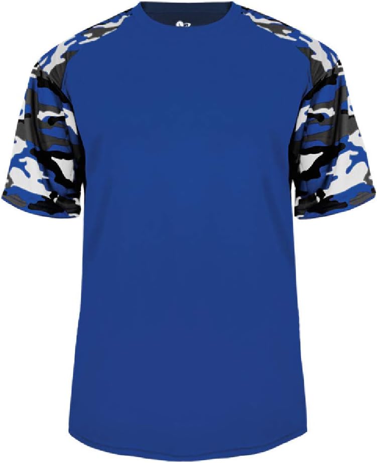 Badger Sport Camo Sleeve Jersey Blank or Customized (Team Name Front and/or Name/Jersey # on Back). 100% Polyester moisture management performance fabric for a Cool and Comfortable Fit. Sublimated camo shoulder panels & sleeves. Self-fabric collar - Double-needle hem, Crewneck. Used by Teams and Individual Athletes in all Sports: Baseball, Softball, Soccer, Volleyball, Lacrosse, etc. Available in 13 Youth and Adult Sizes, 18 Different Camo Sleeve Colors.
