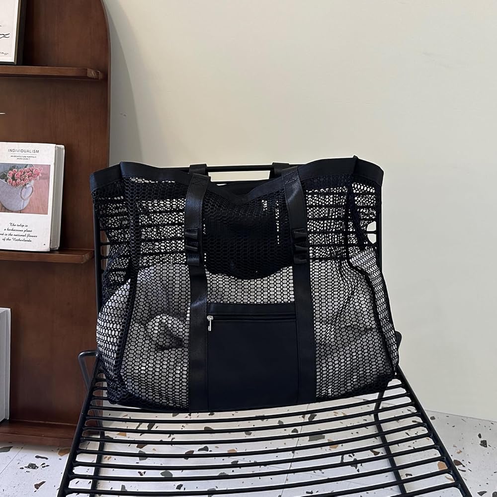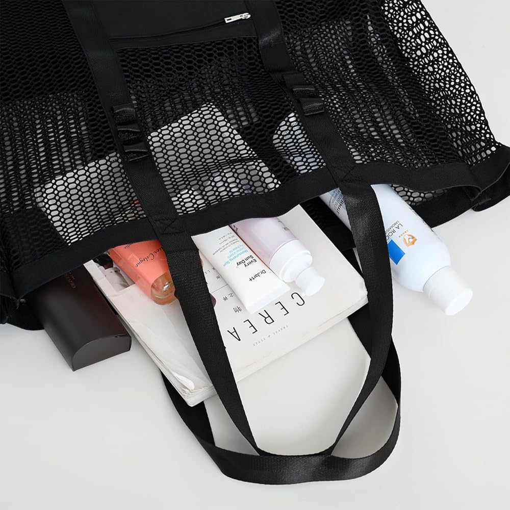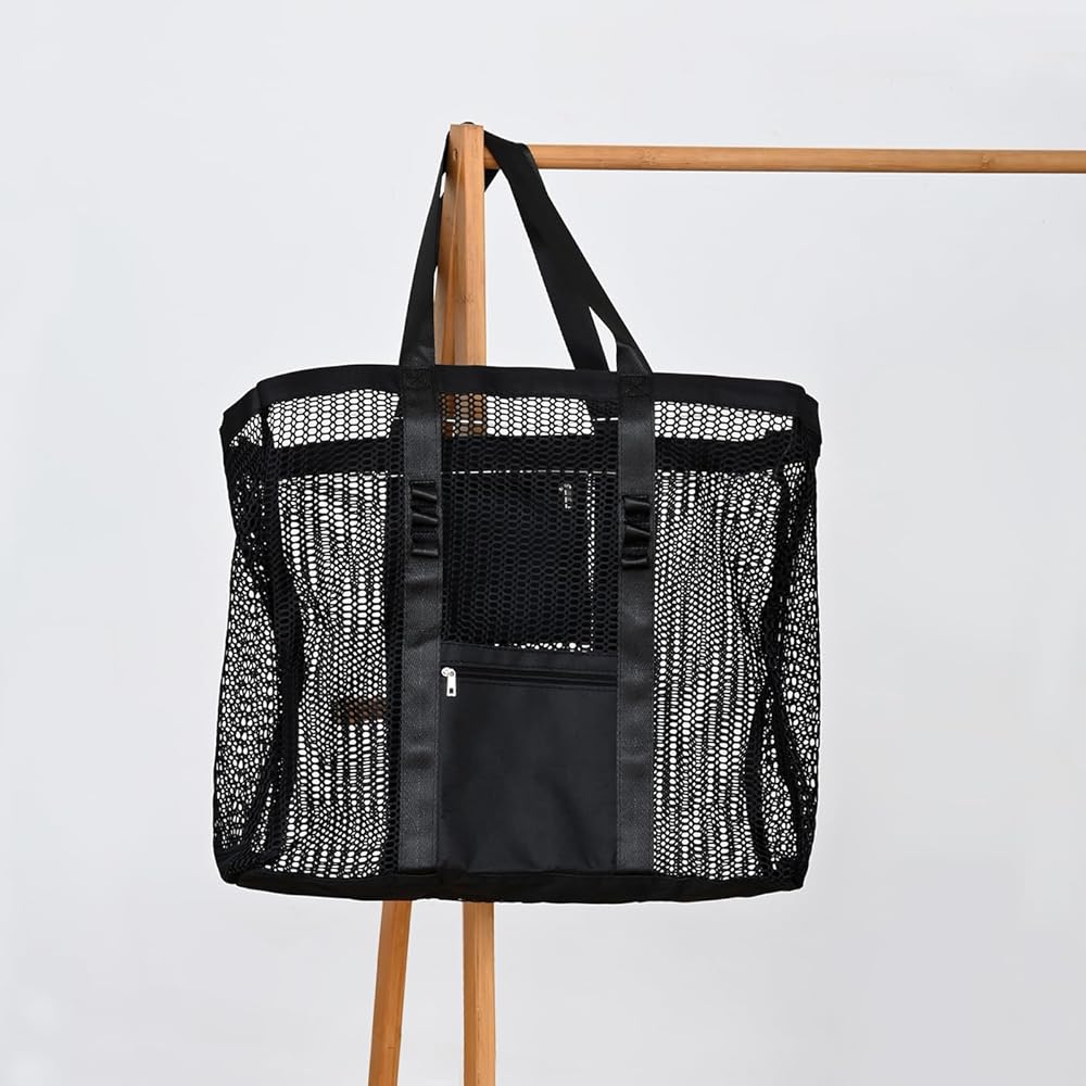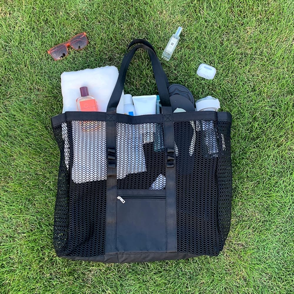 [مادة عالية الجودة] مصنوعة من النايلون المتين عالي الجودة وقماش شبكي على شكل ألماس الساندويتش، هذه الحقيبة الشبكية للشاطئ قوية بما يكفي لتحمل ما يصل إلى 60 رطل، إنها أساسيات الشاطئ الرائعة لقضاء العطلات والتي لن تنكسر بسهولة عن الاستخدام العادي.