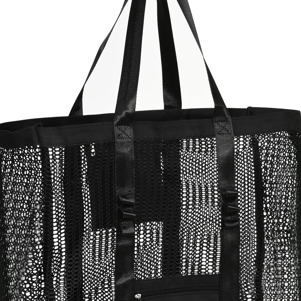 [سعة كبيرة جدًا] يبلغ مقاس حقيبة الشاطئ هذه 16.6 بوصة ارتفاعًا × 19.5 بوصة طولًا × 6.7 بوصة عرضًا، وتحتوي على مساحة كبيرة لمناشف الشاطئ والنعال والهاتف والظلال والواقي من الشمس وزجاجة مياه ومكبر صوت، وحقيبة الشاطئ المقاومة للماء هذه مصممة مع جيب داخلي وجيب أمامي بسحابات يمكنه تخزين المفاتيح والهاتف والبطاقات والأشياء الصغيرة.