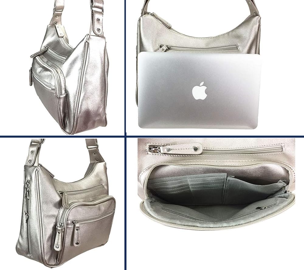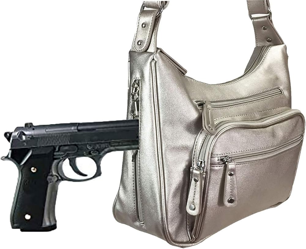 Fashion and functional like all ZZfab Purses. This small size shoulder bag can also use as a over the shoulder cross body bag. Two main zipper pockets in front, one back zipper pocket. Inside zip wall pocket and cell pouches. The size of the bag looks small yet it has a middle size bag capacity and can easily hold your normal daily stuff in the look small bag. Most outstanding is the high quality of the material, craftmanship and functional design: Extra strength & secure on the strap and connection is made for it to last and hold your CCW without breaking the strap. Use thick, environmental friendly material looks and feels like high quality cowhide leather. Plenty of big pockets to organize your stuff. Concealed and carry pocket without hostler so you can maximum the space and put even bigger size CCW in. Or, use it simply as a extra big pocket if you don't put CCW. A hand gun shape lining also help to secure your CCW in the pocket. A lock zipper for the concealed and carry pocket to keep the gun safe. Surprising fact: The front zip pocket is designed for holding credit card , cell phones and secure your cash. You don't need to take a clunky big wallet to take up space and weight with this wallet built in purse !