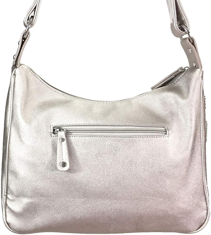 Bag size: 13"L x 10.5"H x 4.5 D", Gun pocket on the side of the bag with locking zipper. Gun compartment size: 10x6". Please note this is a Large size hobo bag, check picture for size. Heavy duty high quality faux leather - Purse net weight only is 2.7 lbs .