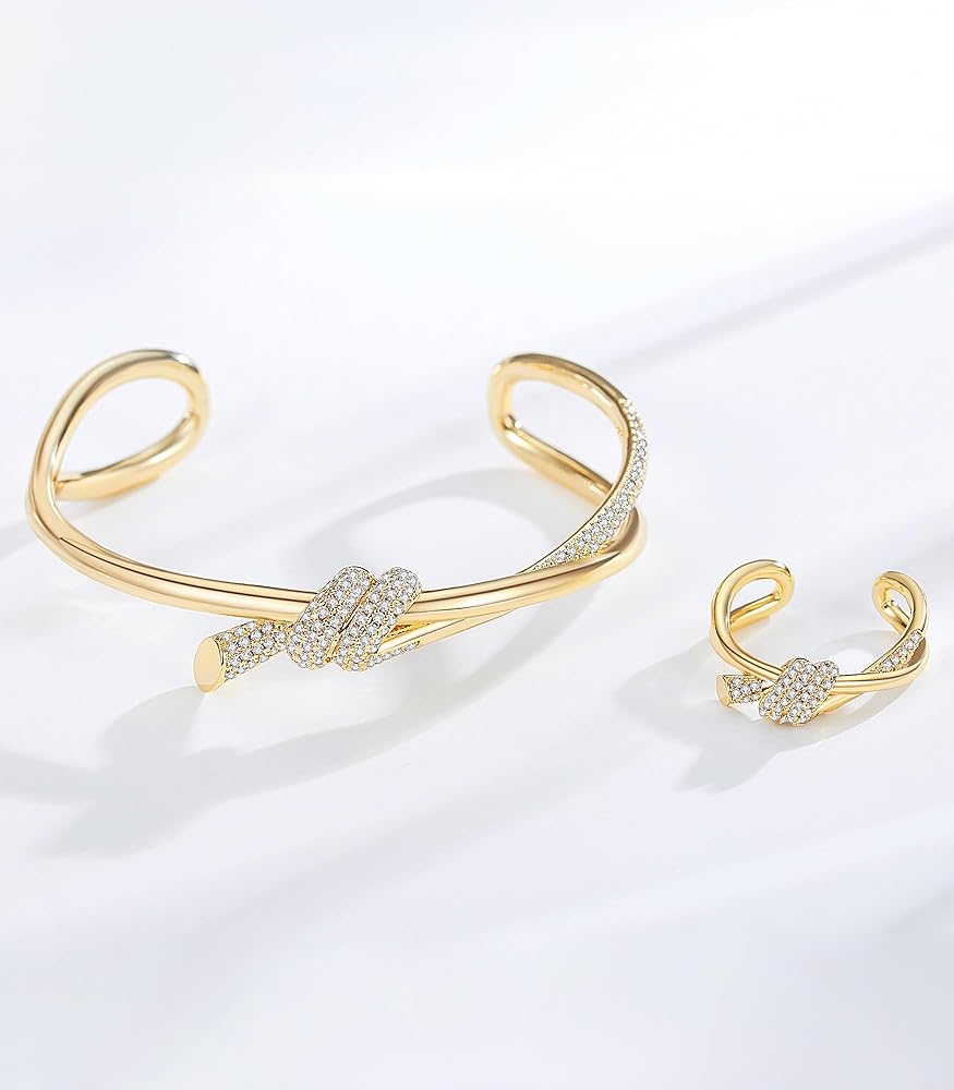✦ حجم السوار المثالي ✦ الأساور الذهبية للنساء مصنوعة بخبرة من طلاء الذهب عيار 14 قيراط عالي الجودة. يتميز السوار بتصميم عقدة خيطية ساحرة، مزين بأحجار الزركونيا المكعبة 5A المبهرة. إنه ينضح بالأناقة والرقي، ويضيف لمسة من السحر إلى أي ملابس.