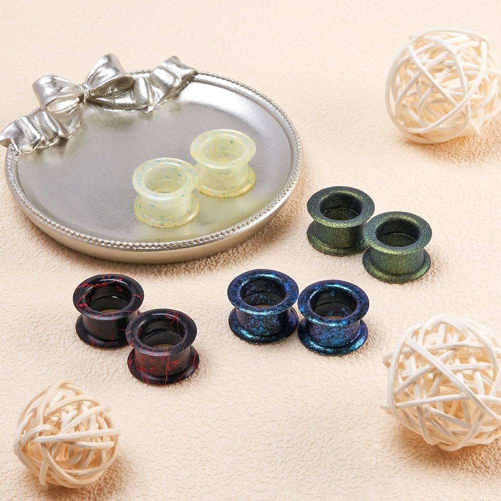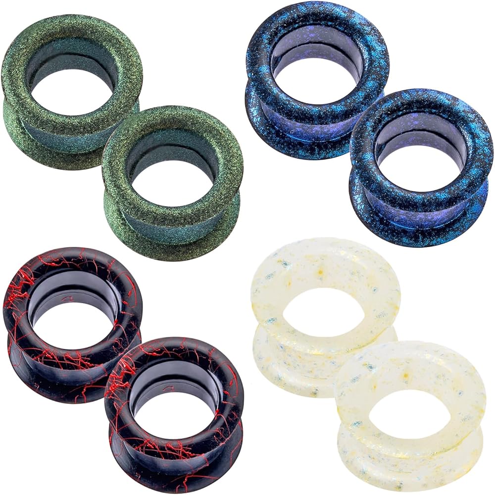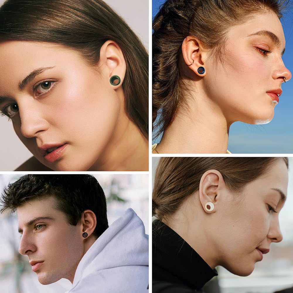 Longbeauty 8 قطع من مقاييس الأذن السميكة من السيليكون سدادات أنفاق الأذن المرنة نقالات حلق مزدوج متوهج ثقب الأذن مجوهرات للنساء والرجال