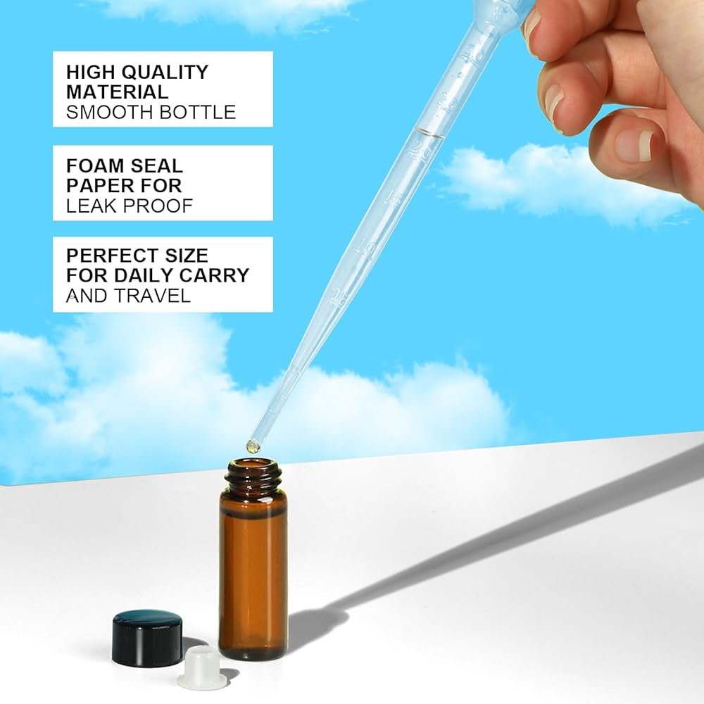 Essential oil bottles: 5ml small glass bottles with 2 droppers. Premium thick amber glass essential oil bottles provide professional protection for your product, only amber glass can prevent oxidation, degradation, and ultra-violet light damage. Fits easily in your pocket, purse or bag