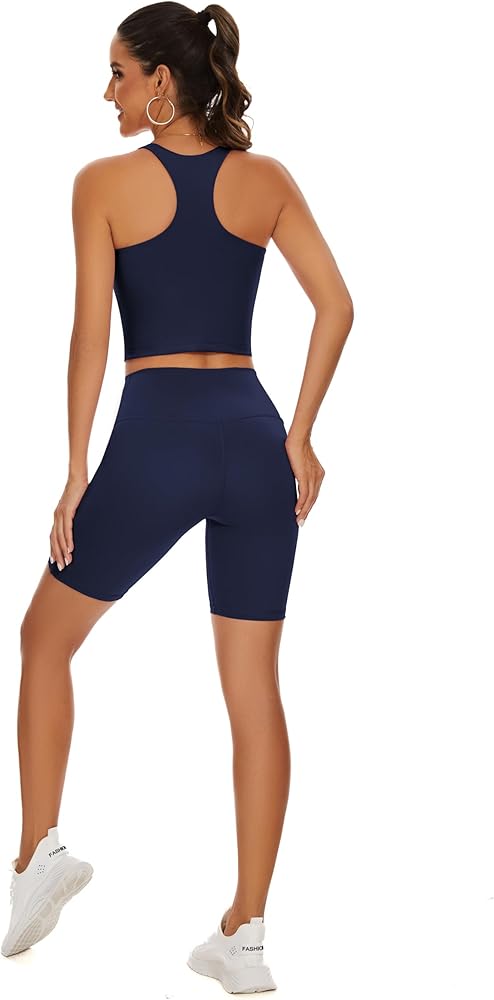 تعزيز الثقة: اشعري بالثقة والقوة أثناء التدريبات الخاصة بك مع مجموعة حمالة الصدر الرياضية والسراويل القصيرة التي توفر دعمًا معتدلاً دون المساس بالأناقة أو الراحة.
