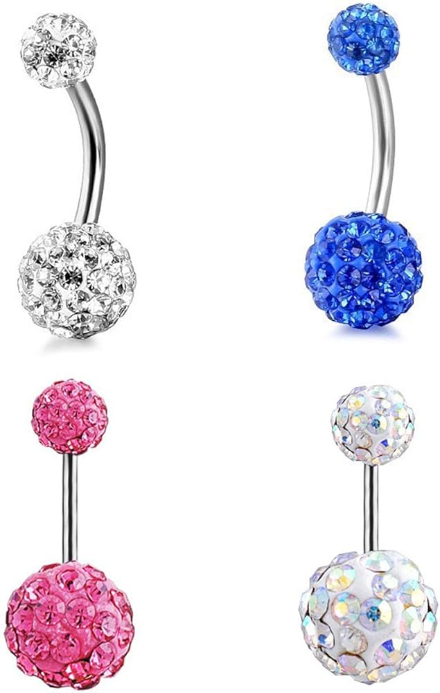 Product Name: GIVUFUN 4 Pcs Women Cubic Zirconia Belly Button Rings Multiple Color Ball Shape Stainless Steel Belly Button Ring