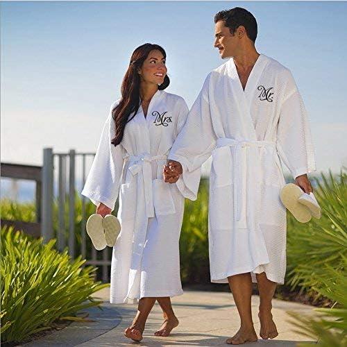 كلاسي برايد روب السيد والسيدة للأزواج: هذه الأرواب الفاخرة المنسوجة بنمط الوافل للأزواج هي الطريقة المثالية للأزواج المتزوجين حديثًا للاحتفال بالزواج. تأتي هذه الأرواب المطابقة للأزواج مع السيد والسيدة السوداء المطرزة على أرواب بيضاء متطابقة. مصنوعة من القطن والبوليستر فائق النعومة، سترغب في ارتدائها طوال اليوم.