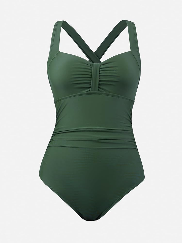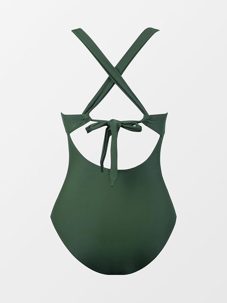 بدلة سباحة نسائية من قطعة واحدة من CUPSHE، ملابس سباحة مكشكشة للتحكم في البطن، ربطة عنق ذاتية من الخلف