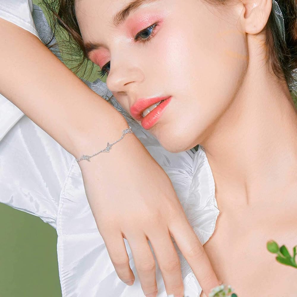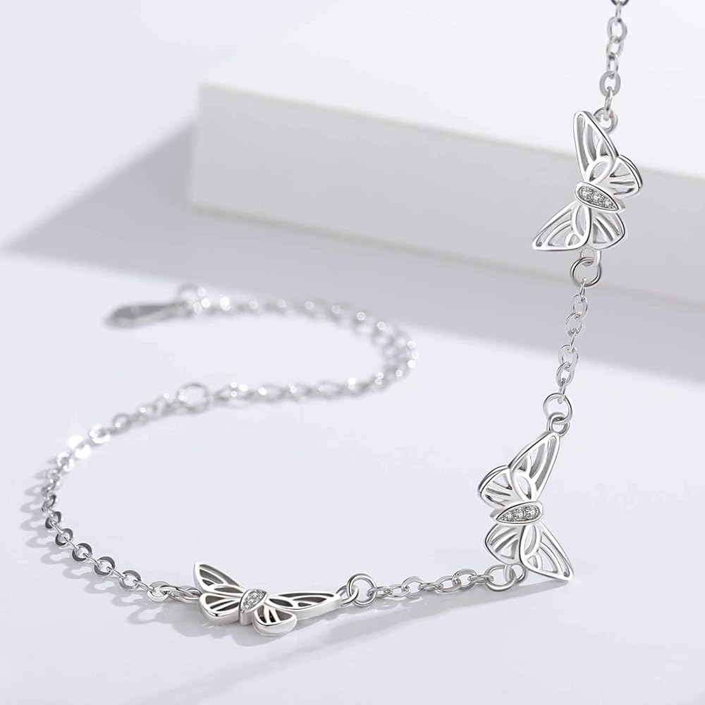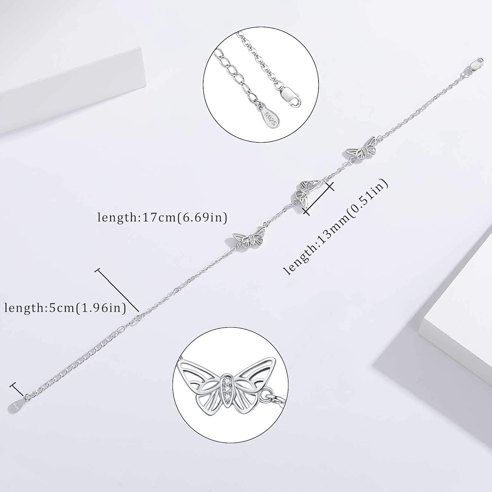 【Silver Hypoallergenic Bracelet】This butterfly bracelet is made of high quality 925 sterling silver, lead-free, nickel-free, hypoallergenic and suitable for sensitive skin. Inlaid with sparkling zircons, the bracelet is more exquisite as a whole.
